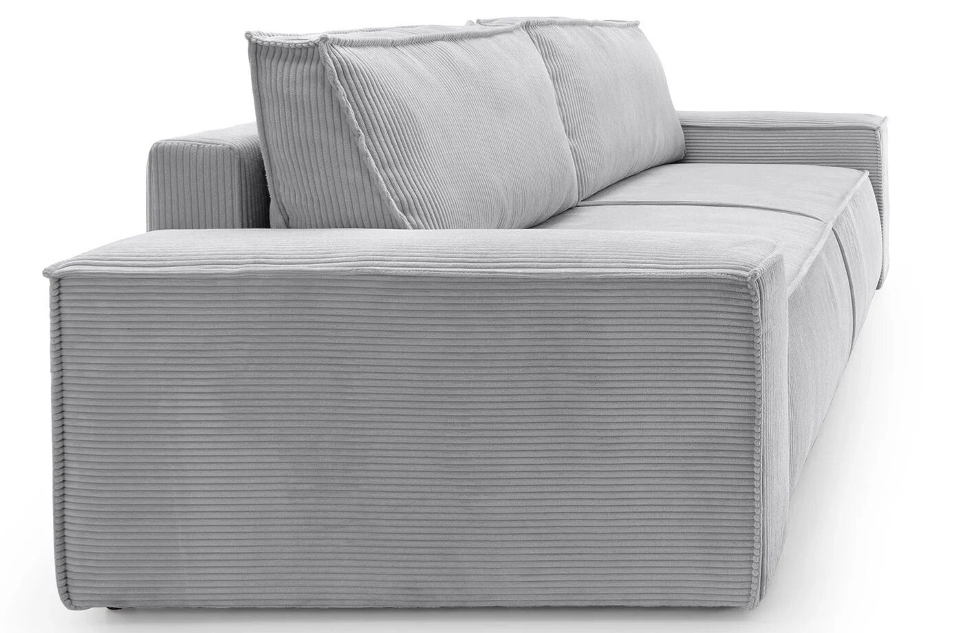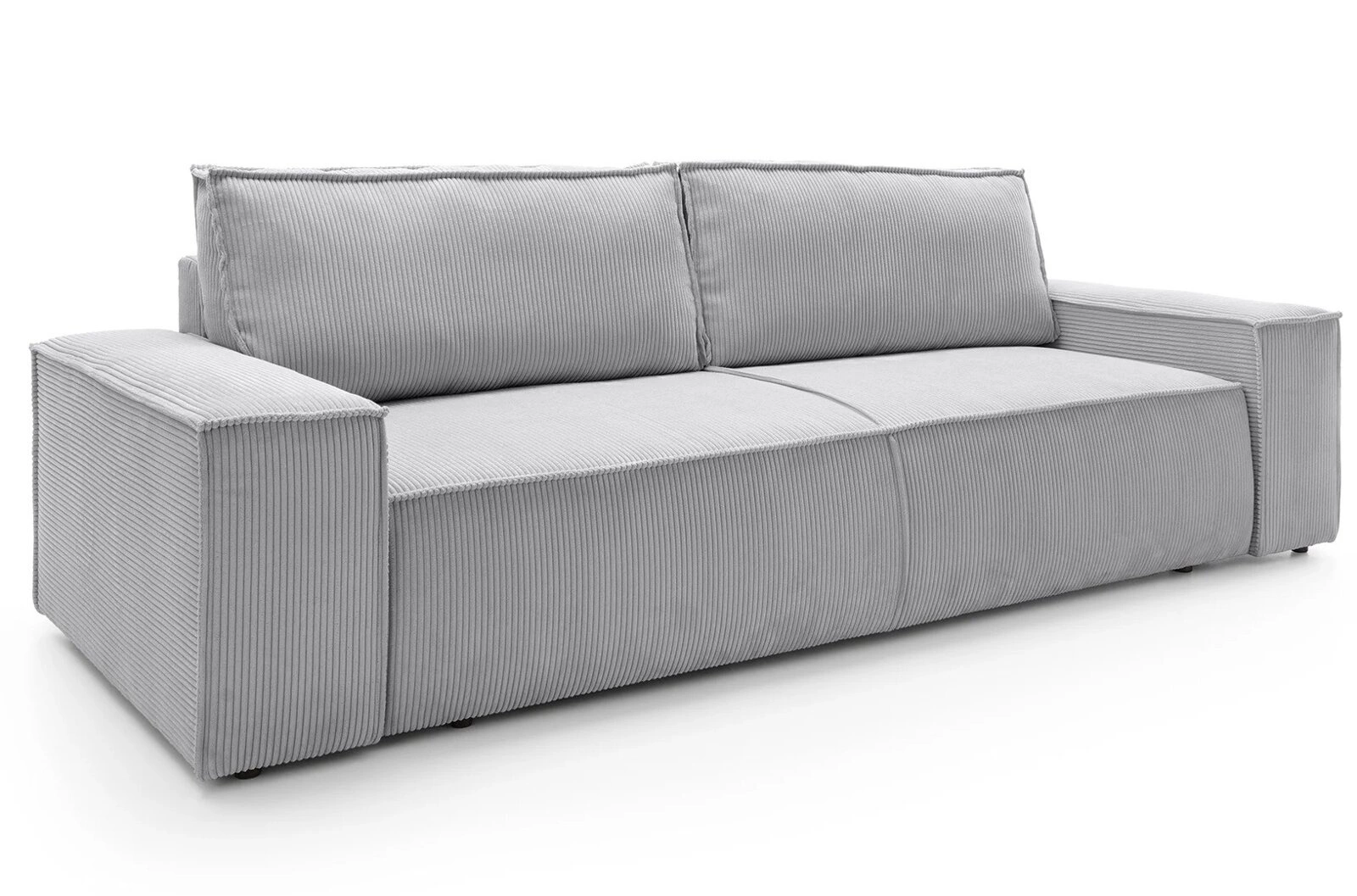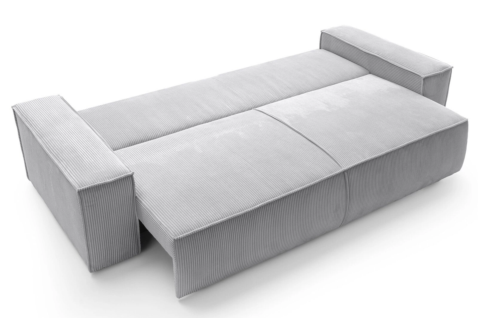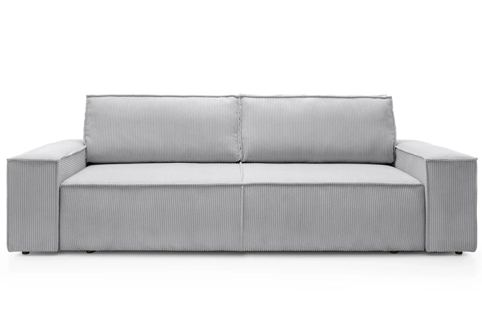 Jasnoszary kolor oraz charakterystyczna faktura sztruksu nadają sofie Molde ponadczasowy wygląd, który doskonale wpisuje się w skandynawskie aranżacje. Prosta forma, matowe wykończenie i szerokie podłokietniki wprowadzają do wnętrza spokój i harmonię, a dołączone do zestawu poduszki dopełniają całości, zapewniając wygodę podczas relaksu z książką lub spotkań z bliskimi. Sofa rozkładana Molde świetnie prezentuje się na tle naturalnych materiałów i jasnych, minimalistycznych dodatków.