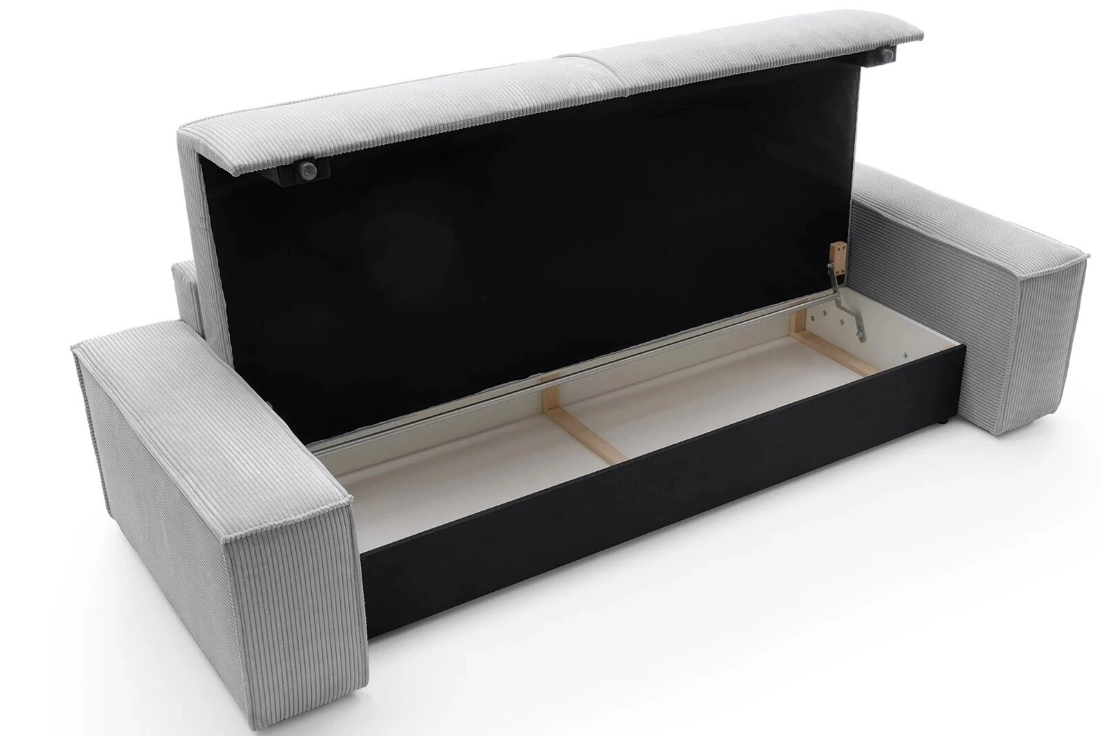 Funkcjonalność tej kanapy rozkładanej doceni każdy, kto szuka wygodnego rozwiązania do codziennego spania lub okazjonalnego nocowania gości. Obszerny pojemnik na pościel pozwala przechowywać koce i poduszki bez konieczności zajmowania dodatkowego miejsca w szafie. Mechanizm Klik-Klak sprawia, że rozkładanie i składanie sofy jest szybkie i intuicyjne – bez zbędnego wysiłku.