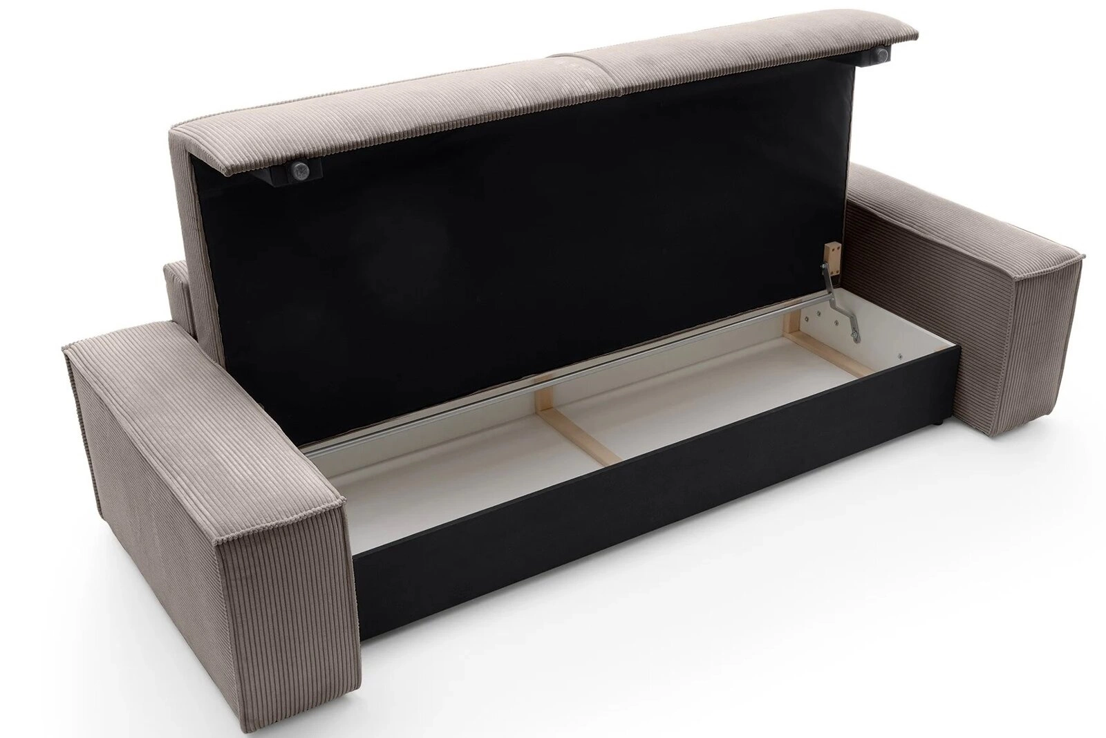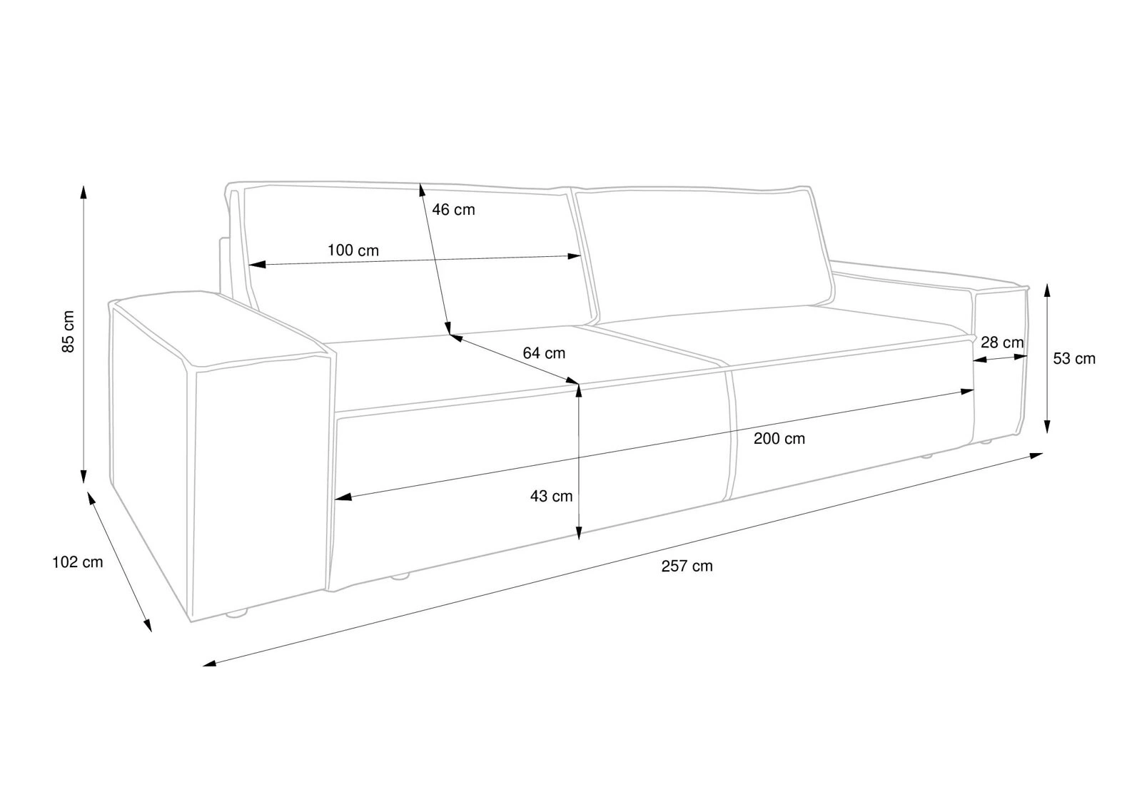 Sofa rozkładana Molde marki Intesi to połączenie funkcjonalności i skandynawskiego stylu, stworzone z myślą o codziennym komforcie. Beżowa tkanina sztruksowa, szerokość aż 257 cm oraz wygodna funkcja spania (powierzchnia 200×135 cm) sprawiają, że ten model doskonale odnajdzie się w salonie, pokoju dziennym czy przestronnym pokoju młodzieżowym. Obecność pojemnika na pościel i zestawu poduszek to praktyczne atuty, które ułatwiają codzienne użytkowanie i utrzymanie porządku.