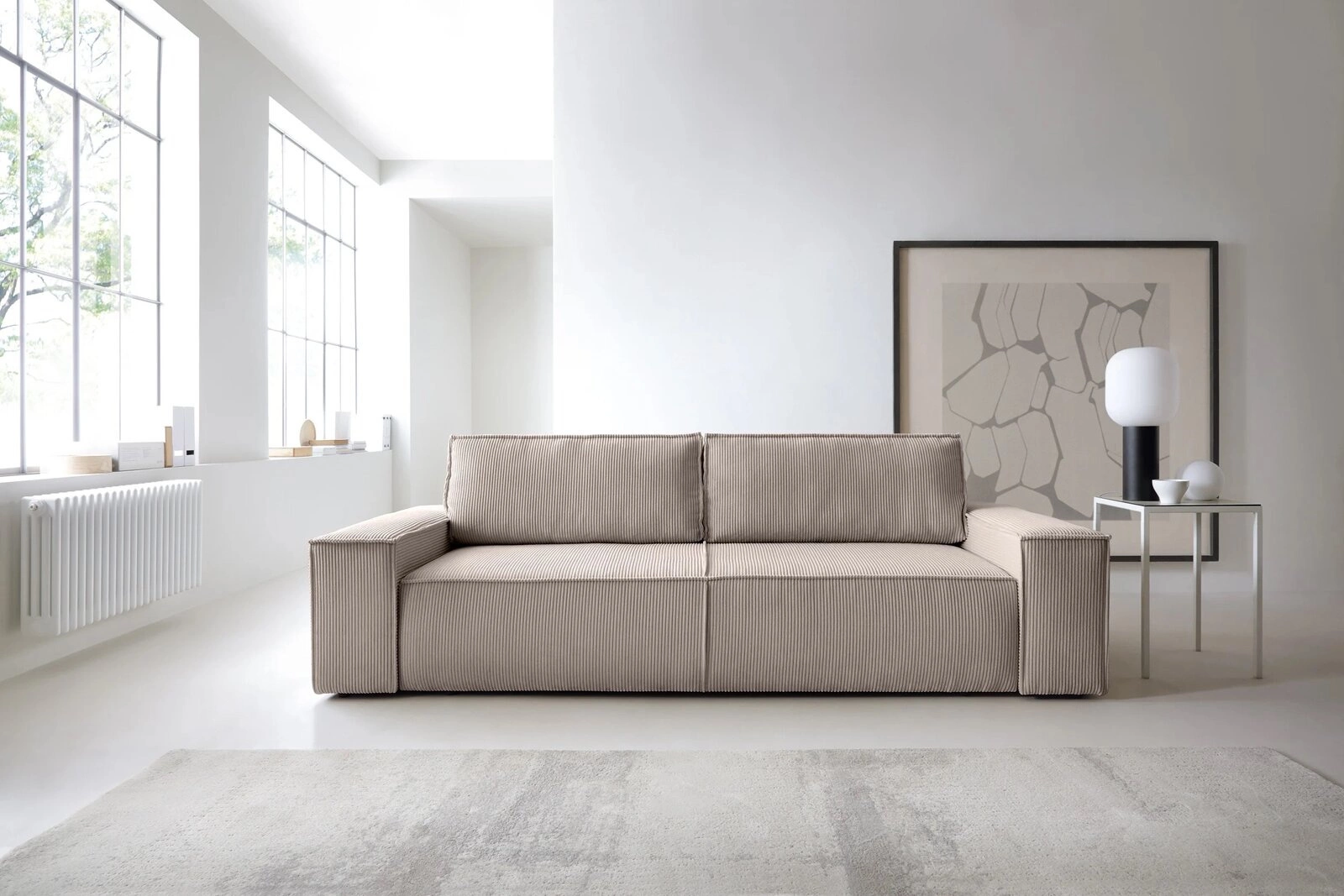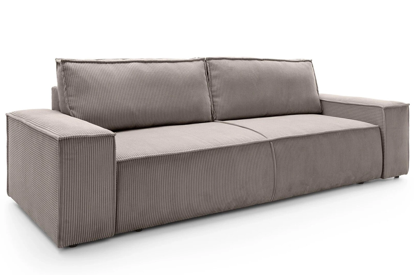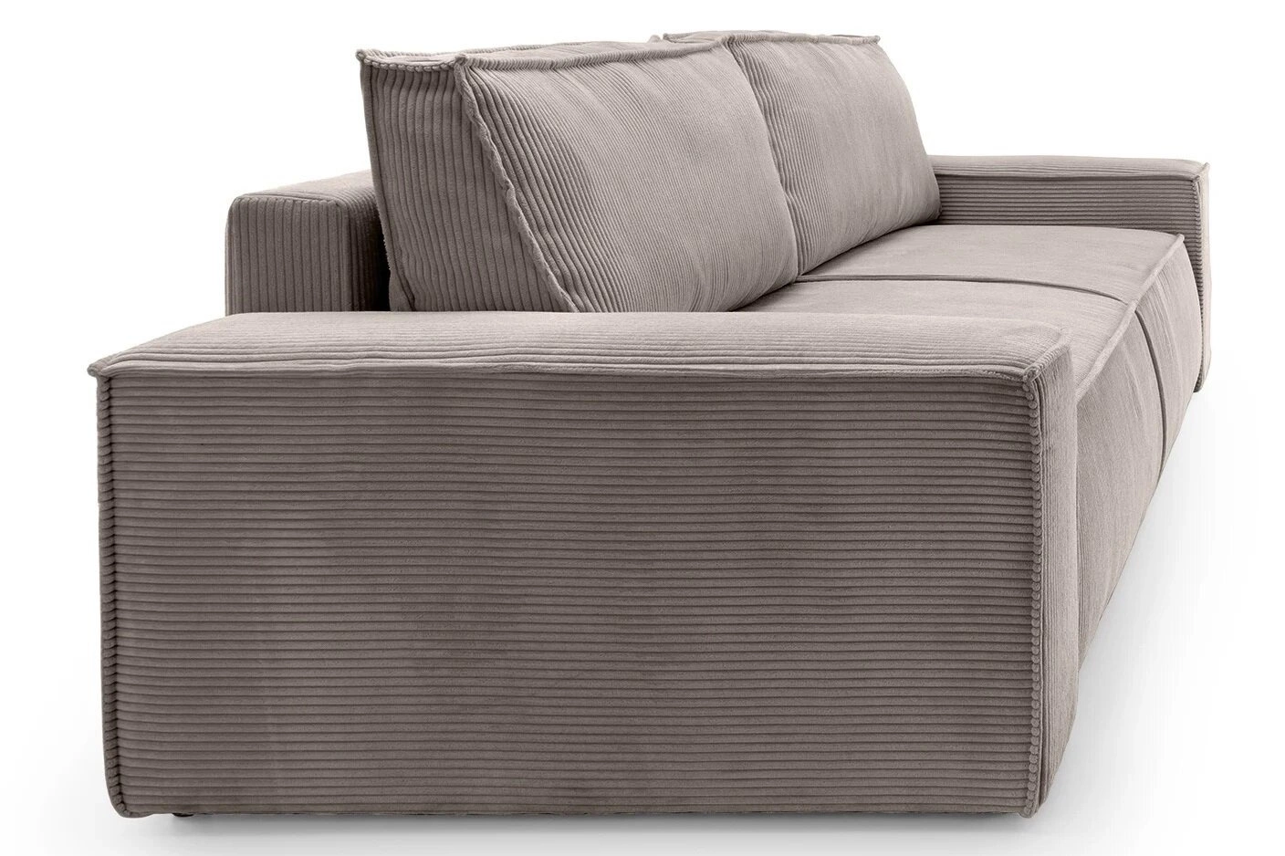 Molde to sofa rozkładana inspirowana stylem skandynawskim – stawia na naturalność, lekkość i subtelne detale. Miękka, przyjemna w dotyku tkanina sztruksowa w odcieniu beżu harmonijnie dopełni jasne, minimalistyczne wnętrza, a matowe wykończenie podbija efekt przytulności. Wysokie oparcie oraz obszerne podłokietniki zapewniają komfort zarówno podczas codziennego wypoczynku, jak i wieczornych spotkań z bliskimi. Sofa Molde to wybór dla osób, które cenią spokojne, ciepłe aranżacje i chcą nadać swojemu salonowi przyjazny, nordycki charakter.