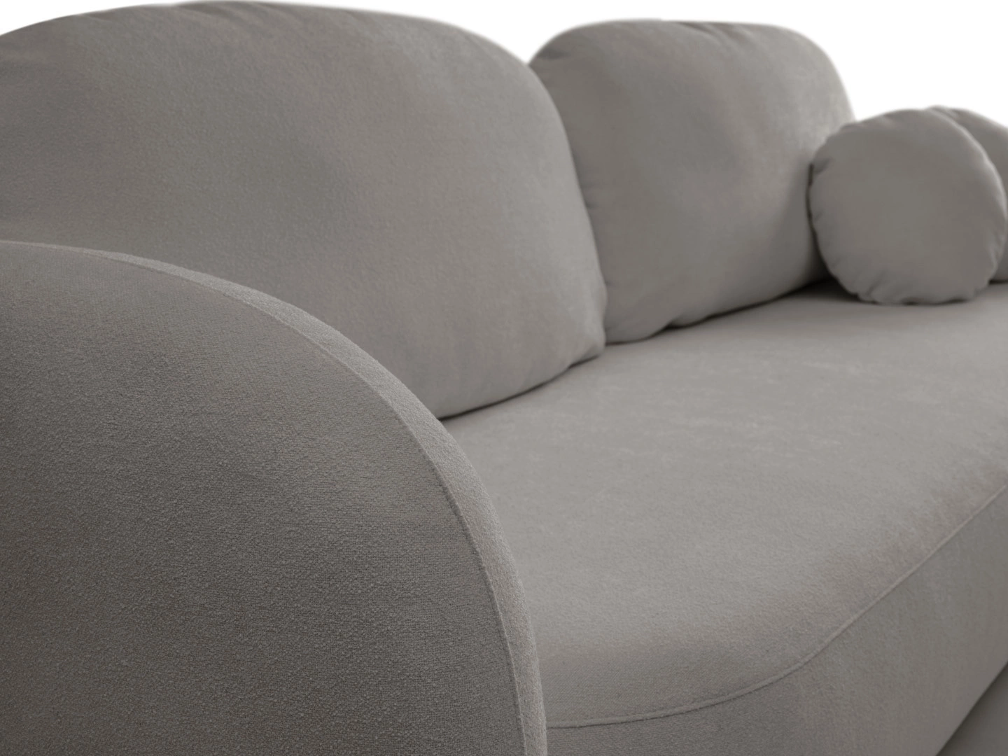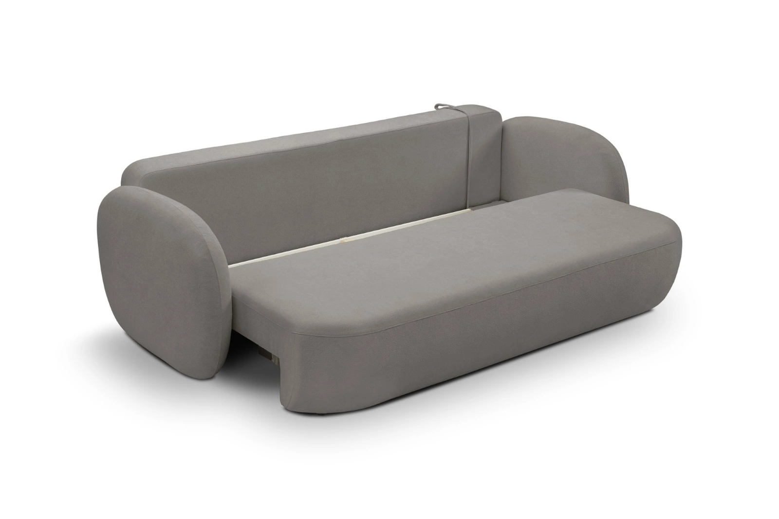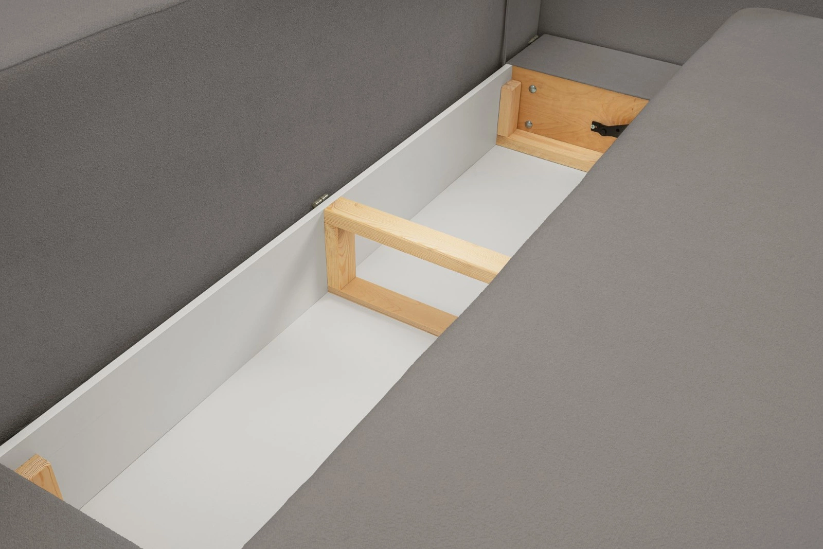 Salby to sofa z funkcją spania, która dzięki mechanizmowi typu DL rozkłada się w kilka chwil, zamieniając się w obszerne łóżko o powierzchni 142x200 cm. Wypełnienie z wysokiej jakości pianki tapicerskiej zapewnia stabilne podparcie ciała podczas snu i relaksu. Praktyczny pojemnik na pościel ułatwia przechowywanie kołder i poduszek, pomagając utrzymać porządek w salonie oraz oszczędzić miejsce w szafach.