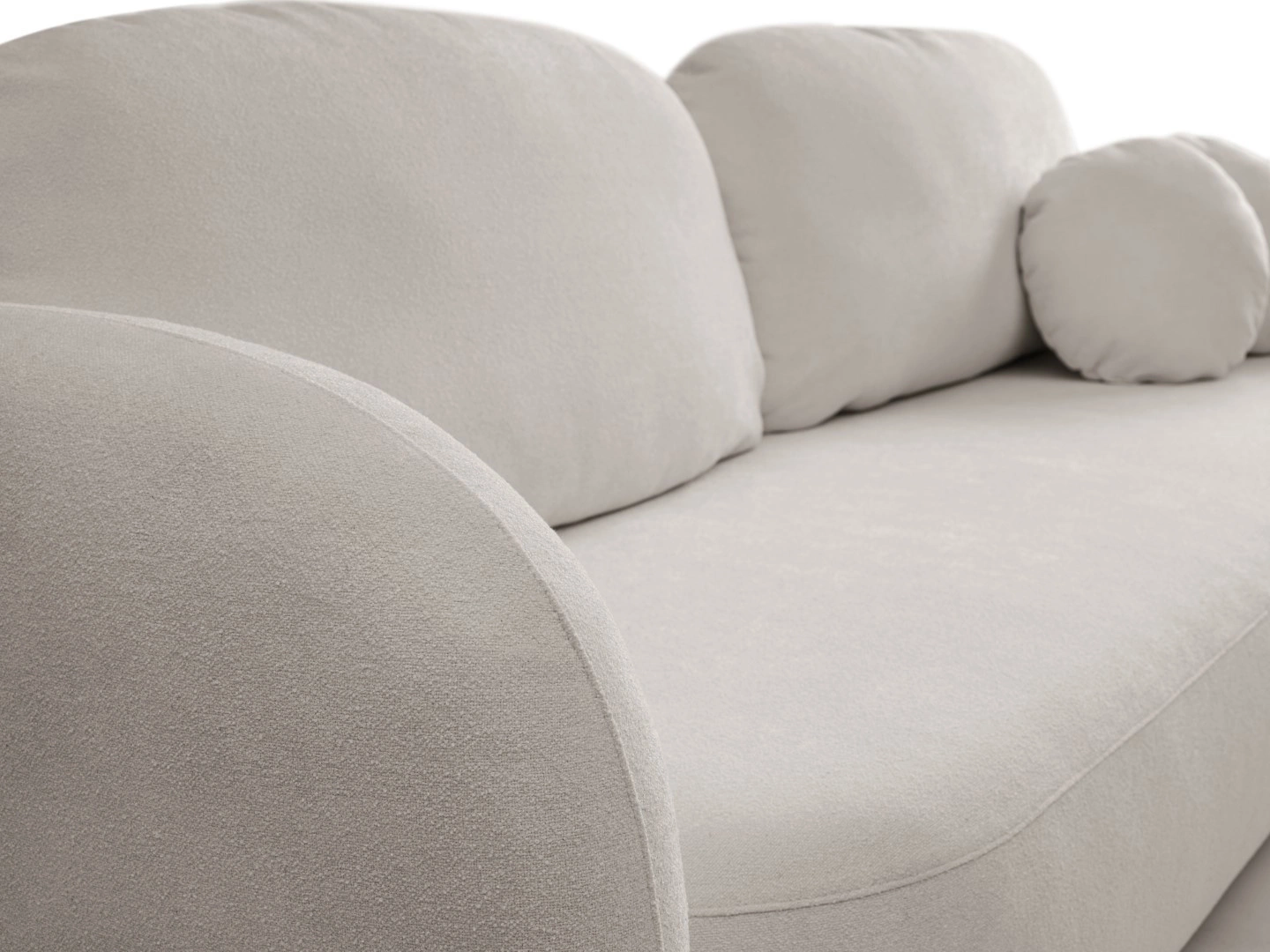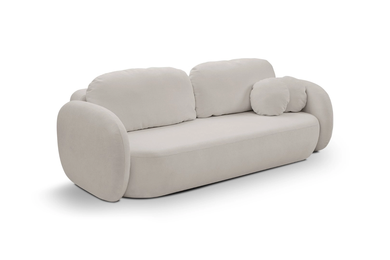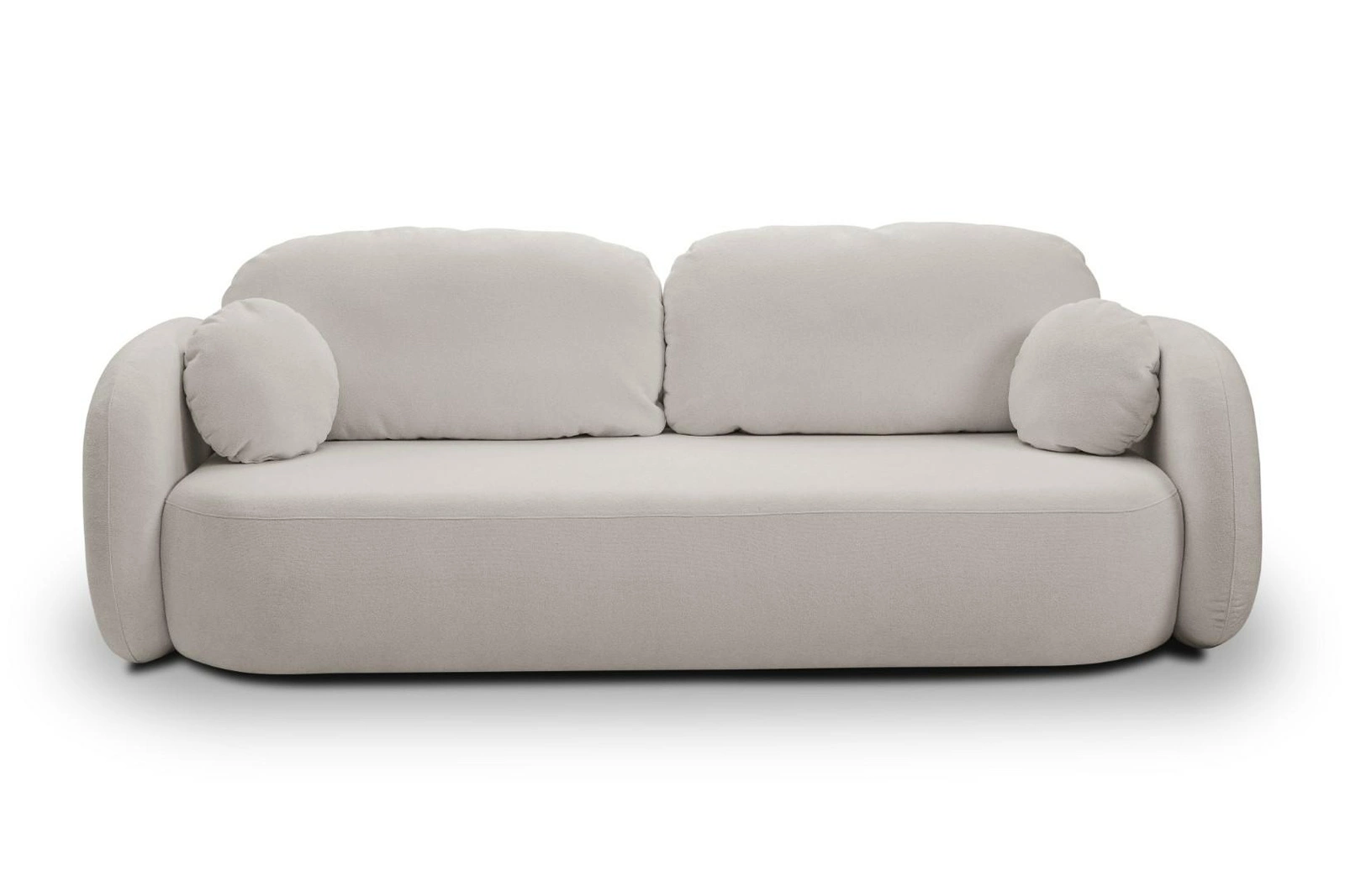 Stonowana szarość i prosta, lekka forma sprawiają, że sofa rozkładana Salby doskonale odnajdzie się w jasnych, przestronnych wnętrzach urządzonych w duchu skandynawskim. Charakterystyczne podłokietniki oraz wyprofilowane poduszki zapewniają wygodę nawet podczas wielogodzinnego użytkowania – to idealne miejsce na rodzinny seans filmowy, spotkanie z przyjaciółmi czy chwilę relaksu z ulubioną książką. Trzyosobowa konstrukcja pozwala wygodnie usiąść większej liczbie domowników, a subtelny kolor ułatwia dopasowanie sofy do różnych aranżacji.