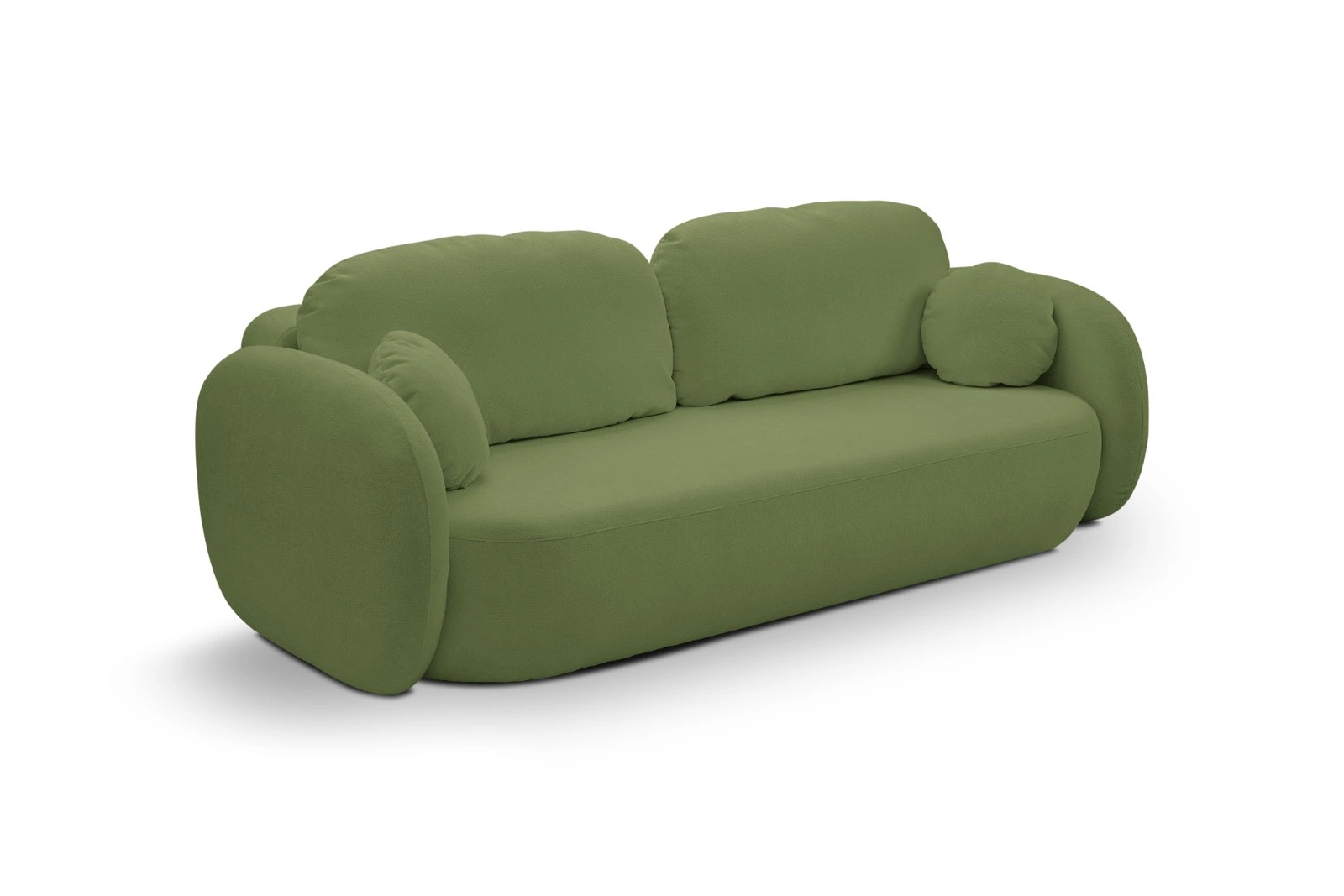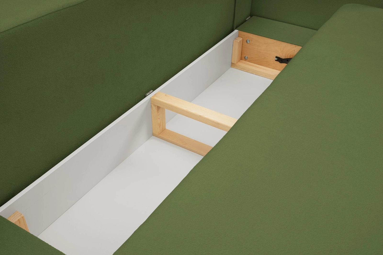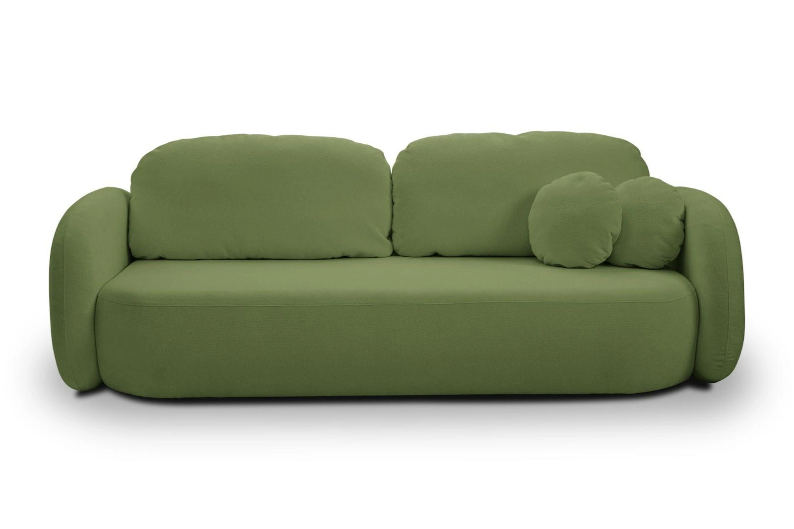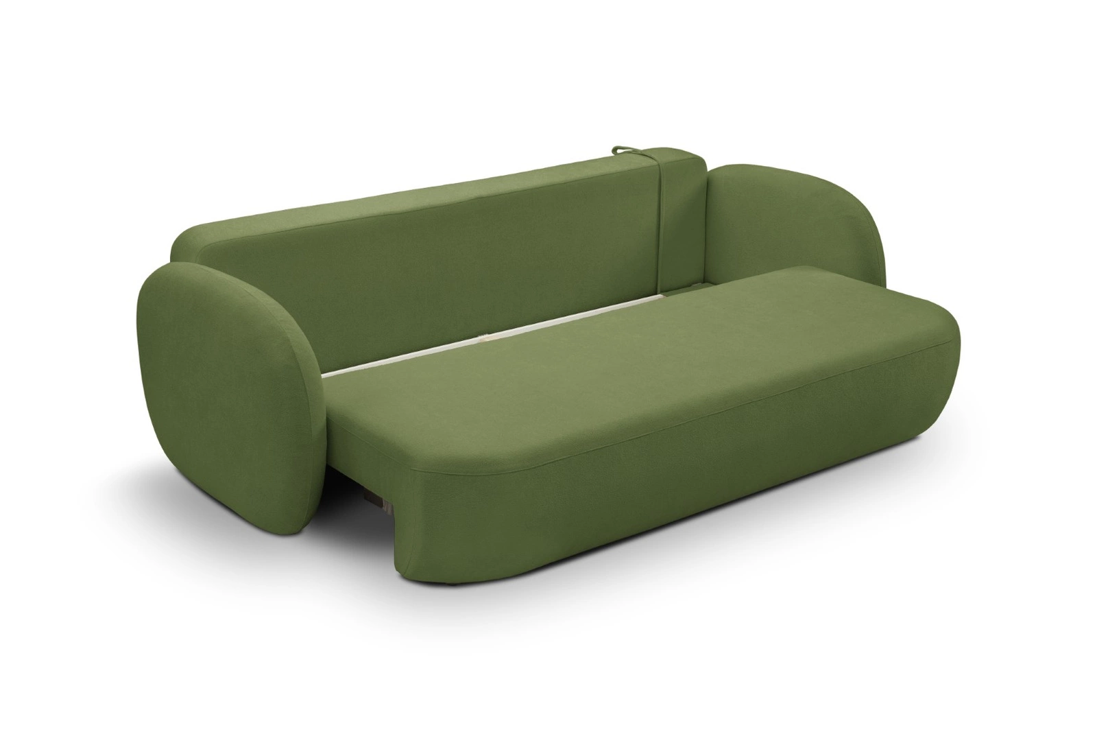 Sofa rozkładana Salby marki Intesi to 3-osobowa, tapicerowana sofa z funkcją spania i pojemnikiem na pościel, utrzymana w głębokim, zielonym kolorze. Model ten wyróżnia się komfortowym siedziskiem o wysokości 39 cm, dużą powierzchnią spania 142×200 cm oraz solidną podstawą z drewna sosnowego. Dzięki minimalistycznej formie idealnie wpisuje się w nowoczesne, skandynawskie aranżacje salonu czy pokoju młodzieżowego, oferując wygodę codziennego wypoczynku i praktyczne rozwiązania na co dzień.
