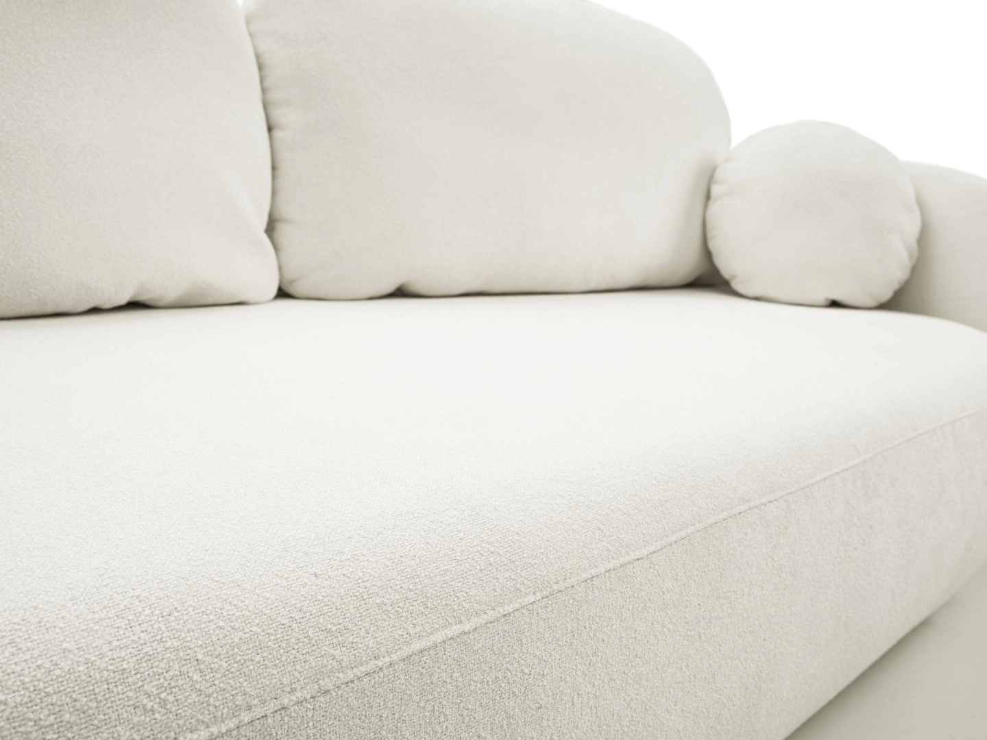 Funkcja rozkładania typu DL pozwala w kilka chwil zamienić sofę w wygodne łóżko – wystarczy jeden ruch, by uzyskać przestrzeń do spania o wymiarach 142×200 cm. To rozwiązanie sprawdzi się zarówno podczas codziennego odpoczynku, jak i wtedy, gdy odwiedzają Cię goście. Wbudowany pojemnik na pościel ułatwia przechowywanie poduszek czy koców, pomagając utrzymać porządek w salonie. Wypełnienie z pianki tapicerskiej i silikonu zapewnia sprężystość oraz miękkość siedziska, co przekłada się na komfort użytkowania przez cały dzień.