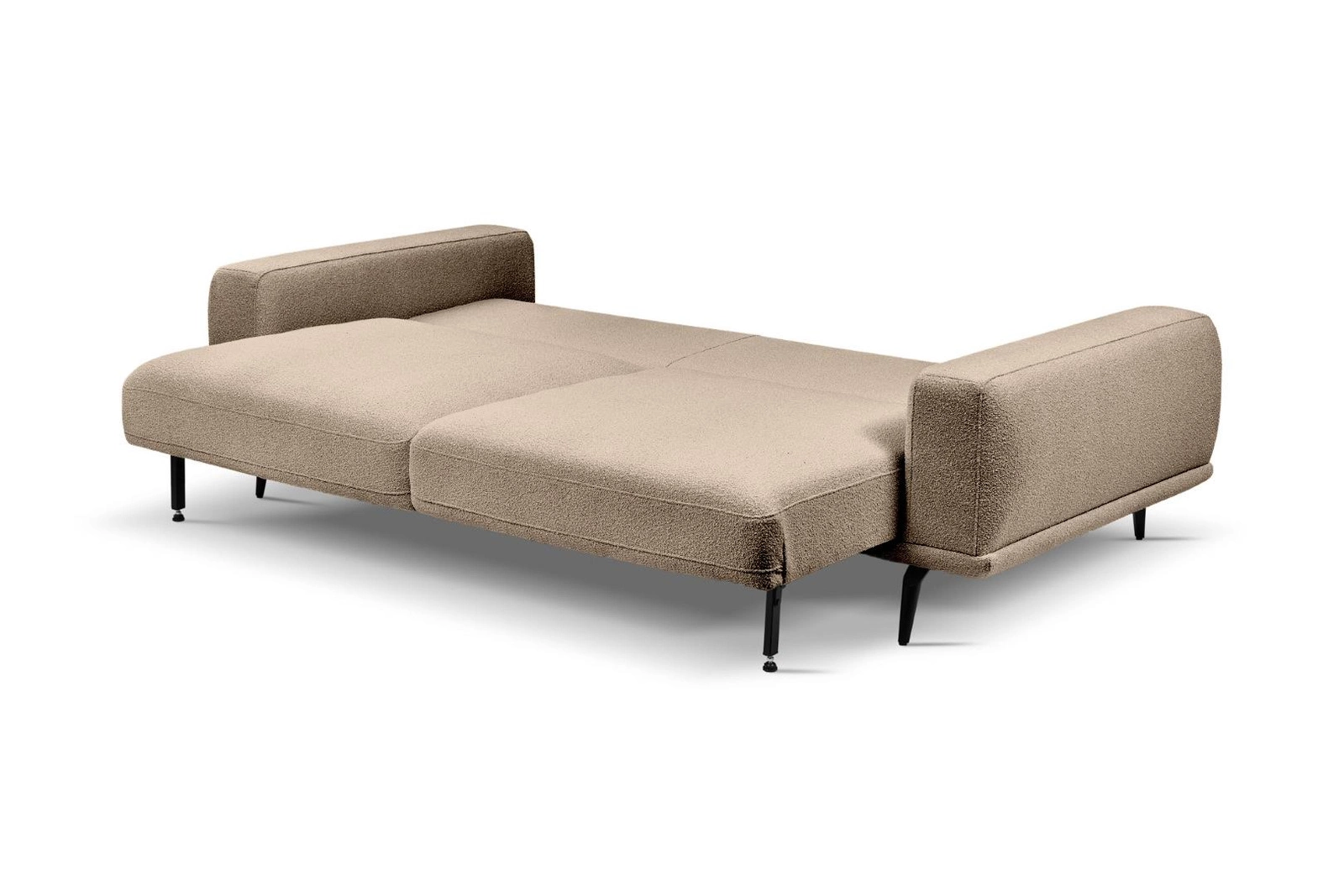 Sofa rozkładana Salmi marki Intesi to beżowa, trzyosobowa sofa z funkcją spania, zaprojektowana w stylu skandynawskim z myślą o salonie. Łączy minimalistyczny design z wygodą codziennego użytkowania – szerokość 242 cm i głębokość 115 cm zapewniają dużo przestrzeni do siedzenia, a powierzchnia spania 140×190 cm pozwala na komfortowy wypoczynek nawet dla dwóch osób. Miękkie wypełnienie, przyjemna w dotyku tapicerka oraz solidna podstawa na czarnych, metalowych nogach sprawiają, że jest to mebel stworzony zarówno do relaksu, jak i praktycznego użytkowania.