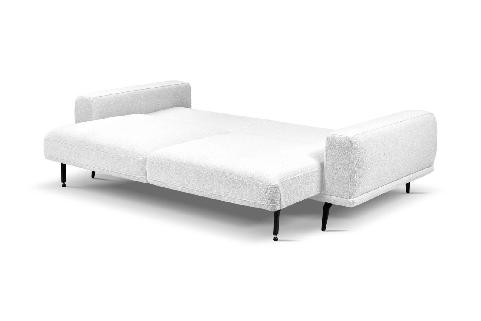 Sofa Salmi zachwyca geometryczną sylwetką i śnieżnobiałym kolorem, który wnosi do wnętrza poczucie świeżości oraz przestronności. Skandynawski design sprawia, że mebel doskonale współgra z jasnymi ścianami, naturalnym drewnem i subtelnymi dodatkami. Dzięki temu sofa rozkładana świetnie odnajdzie się zarówno w nowoczesnym salonie, jak i w przytulnym pokoju dziennym, stając się centralnym punktem aranżacji.