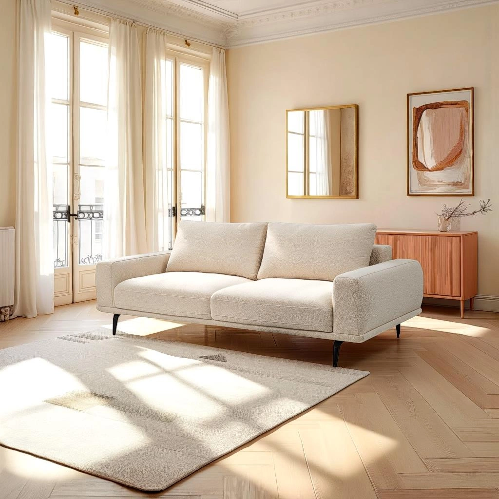 Sofa rozkładana Salmi marki Intesi to propozycja stworzona dla miłośników skandynawskiego stylu, którzy cenią połączenie funkcjonalności z minimalistyczną estetyką. Biała, miękka tapicerka, szerokość aż 242 cm oraz wygodne siedzisko zapewniają komfort zarówno podczas codziennego wypoczynku, jak i snu. Dzięki prostej funkcji rozkładania, sofa Salmi błyskawicznie zamienia się w praktyczne łóżko o powierzchni 140×190 cm, idealne do salonu lub pokoju młodzieżowego.