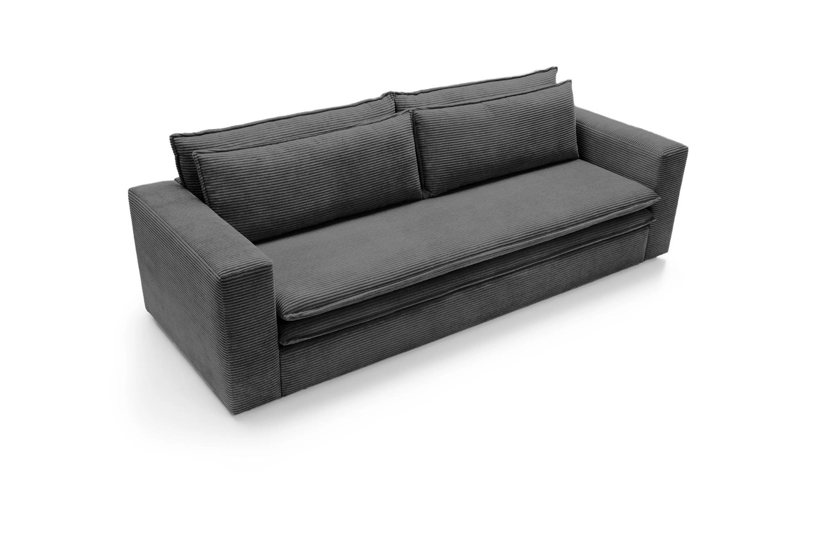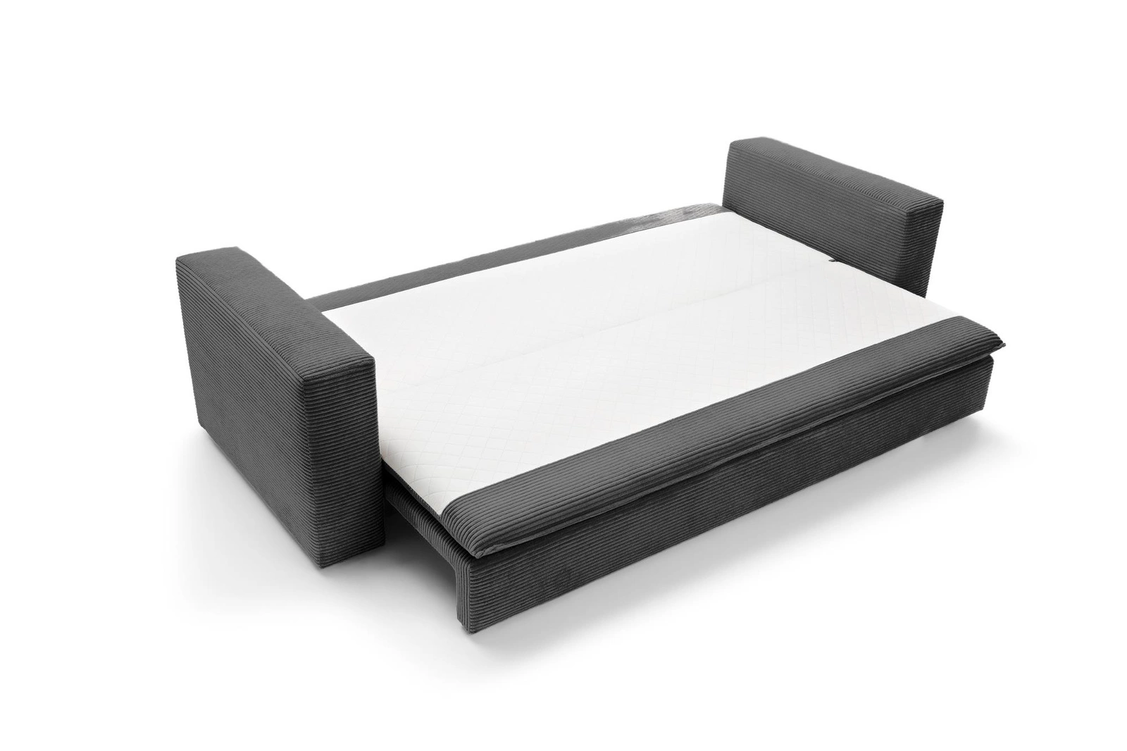 - Miękka tkanina sztruksowa – przyjemna w dotyku i odporna na codzienne użytkowanie, dzięki czemu sofa zachowa swój wygląd na dłużej.