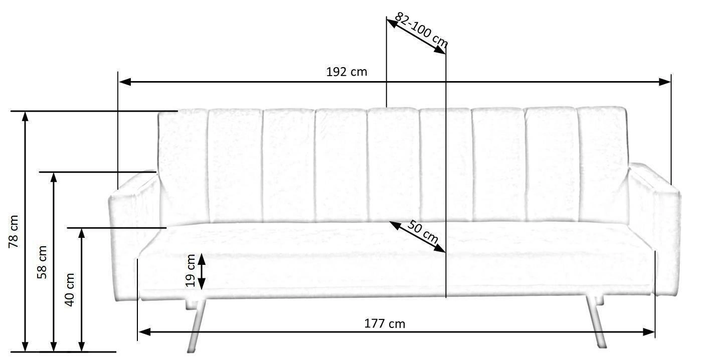 Głębokość sofy w ustawieniu do siedzenia to 82 cm