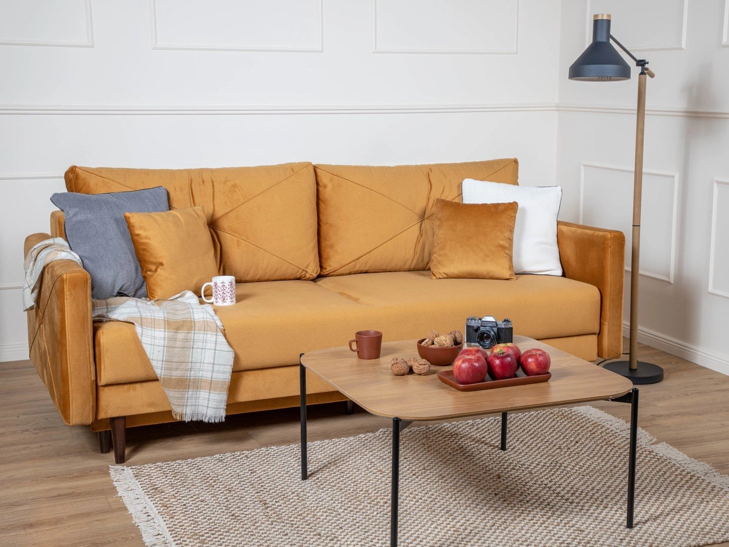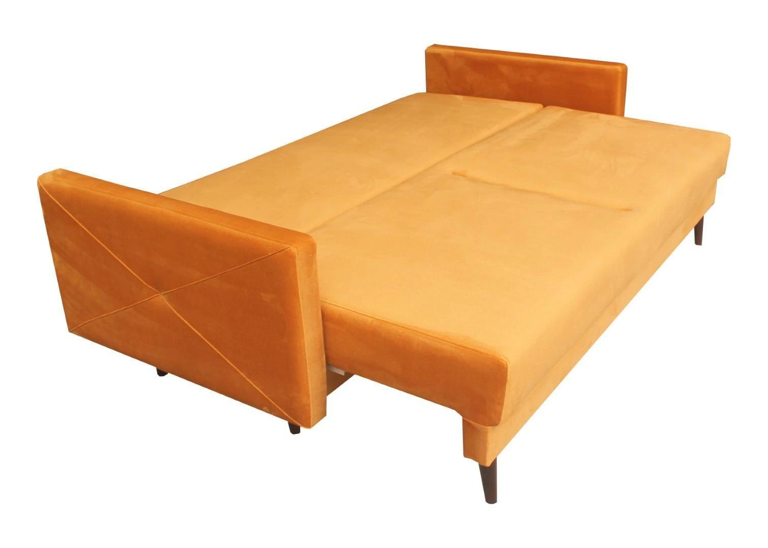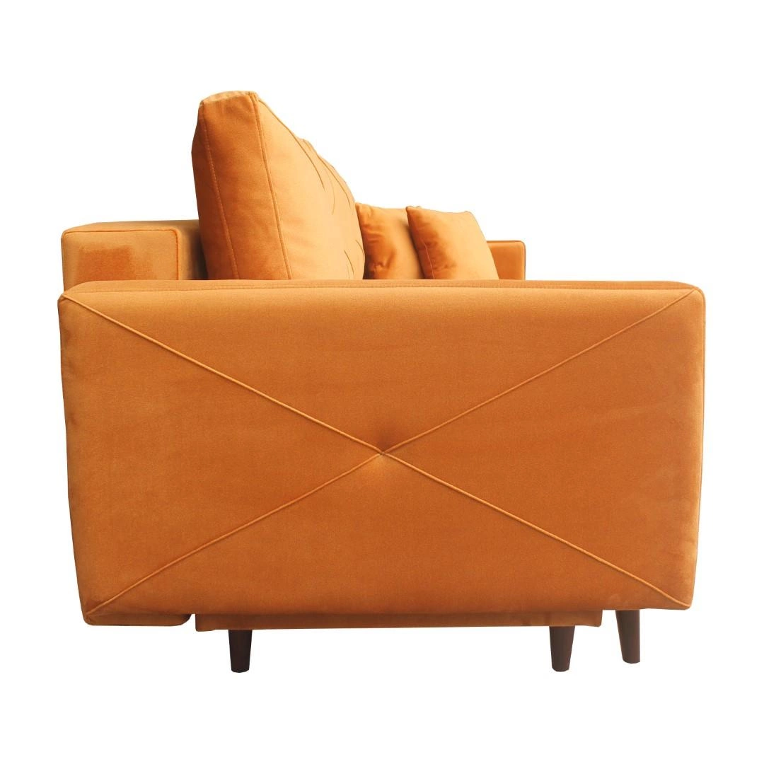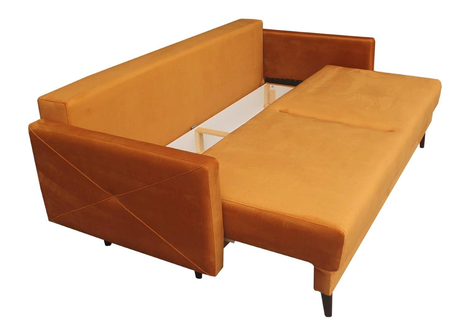Cała sofa opiera się na 5 drewnianych nóżkach. Element rozkładany także posiada dodatkowe wsparcie od spodu.