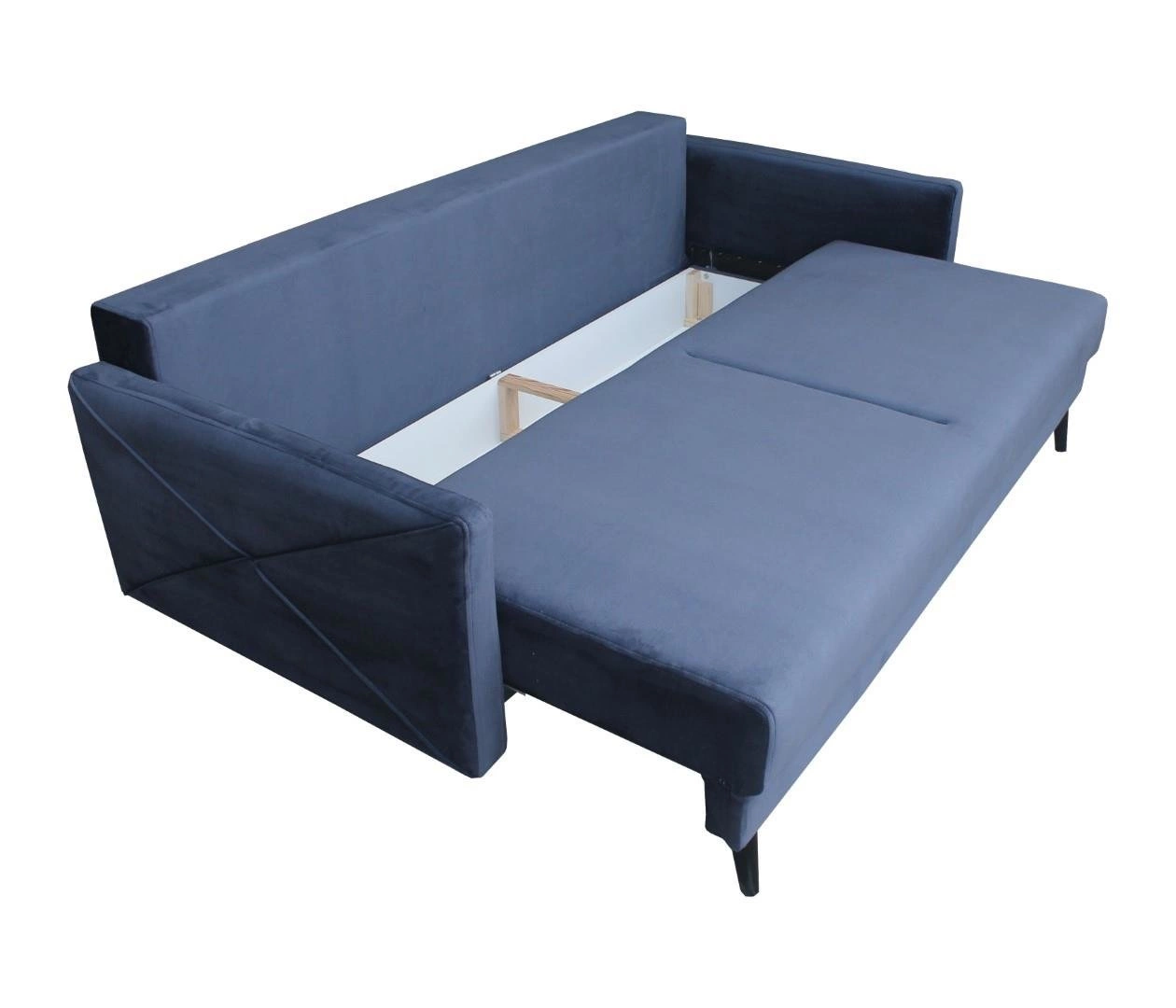 Cała sofa opiera się na 5 drewnianych nóżkach. Element rozkładany także posiada dodatkowe wsparcie od spodu.