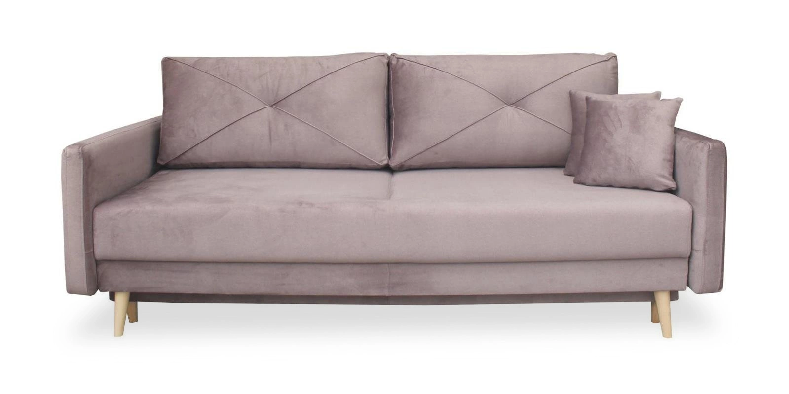 Cała sofa opiera się na 5 drewnianych nóżkach. Element rozkładany także posiada dodatkowe wsparcie od spodu.