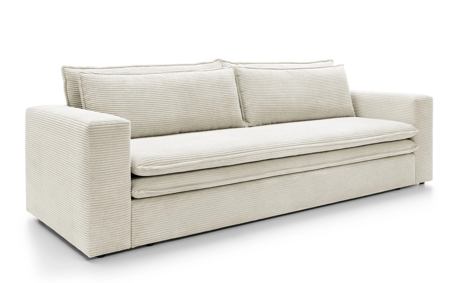Sofa Ulnes zachwyca elegancją bieli i wyrazistą strukturą sztruksowej tkaniny, dzięki czemu doskonale wpisuje się w jasne, przestronne aranżacje w stylu skandynawskim. Jej minimalistyczna forma uzupełniona ergonomicznymi podłokietnikami sprawia, że sofa rozkładana wygląda lekko, a jednocześnie oferuje pełen komfort użytkowania zarówno podczas codziennego relaksu, jak i spotkań z bliskimi. Delikatny połysk aksamitnego wykończenia sprawia, że sofa staje się efektownym punktem każdego salonu.