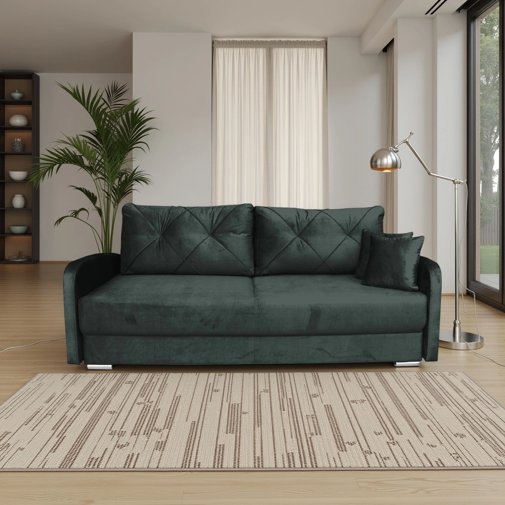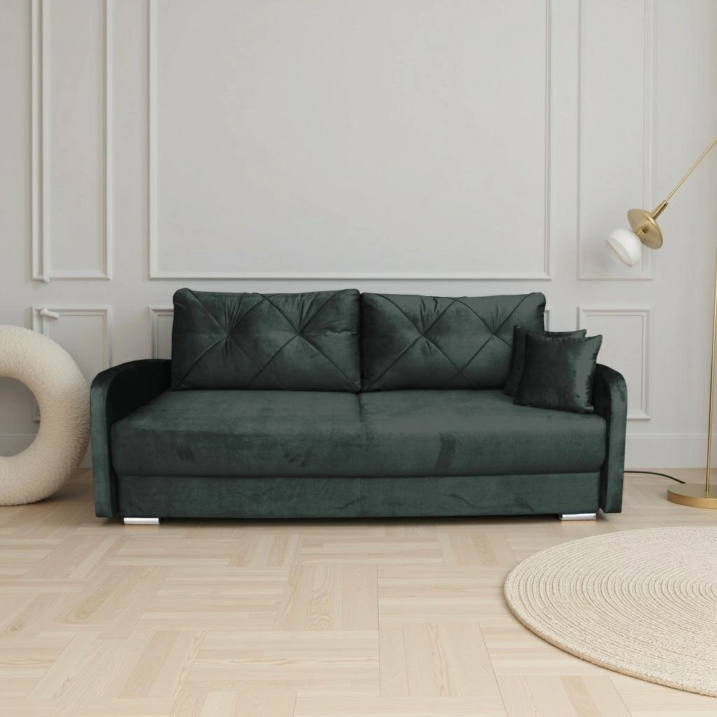 Sofa rozkładana z funkcją spania Urduna marki Intesi to propozycja dla osób, które szukają uniwersalności, wygody i stylu w jednym meblu. Model utrzymany w świeżym, zielonym kolorze łączy w sobie skandynawską prostotę z praktycznymi rozwiązaniami. Miękka tkanina, stabilna podstawa z drewna oraz szerokość 205 cm sprawiają, że sofa idealnie sprawdzi się zarówno jako miejsce do codziennego wypoczynku, jak i nocnego snu.