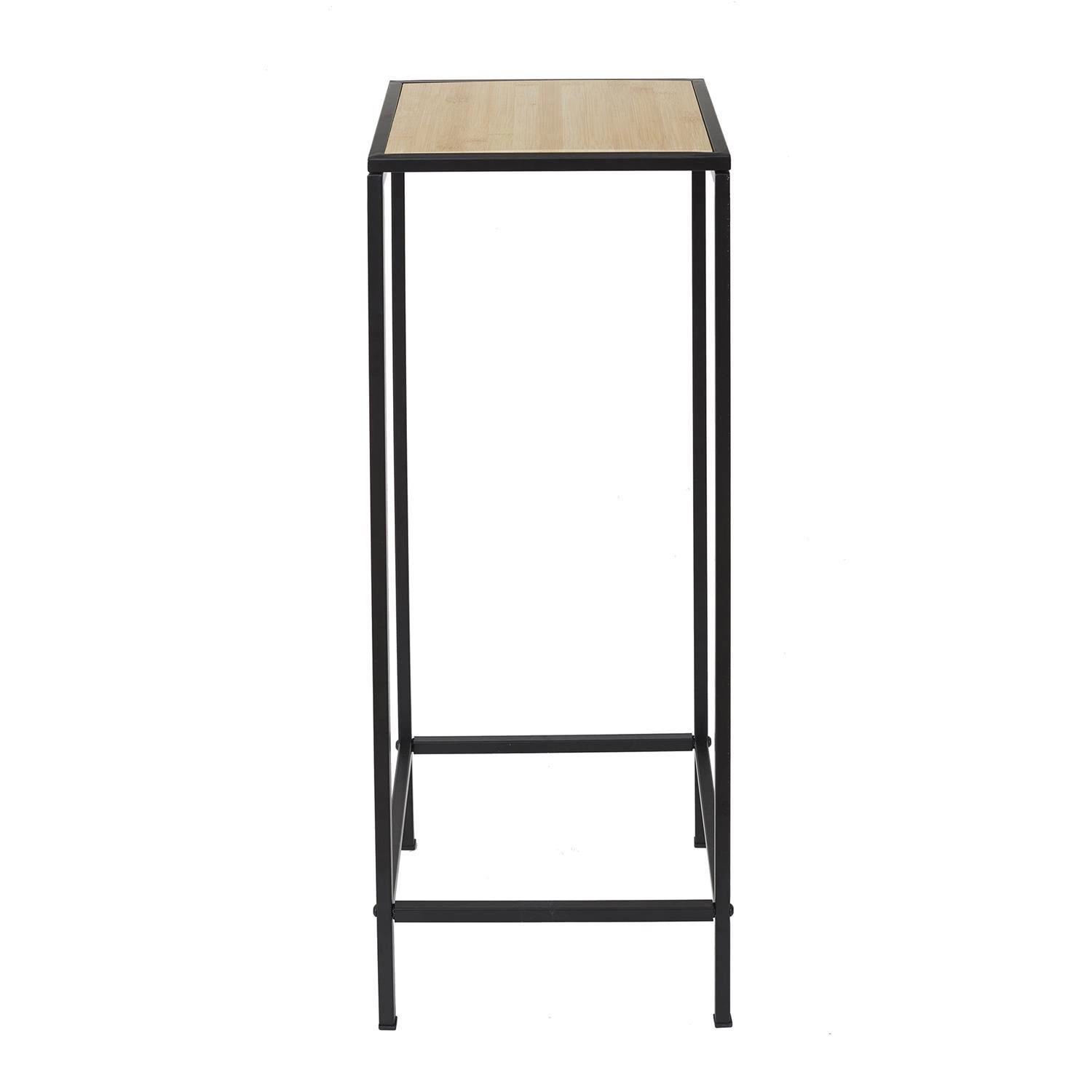 Wysoki stolik o kwadratowym blacie wykonany został z drewna bambusowego. Podstawę zaś stanowią cztery metalowe nogi malowane proszkowo na czarno. Stolik będzie idealnym meblem do niedużego wnętrza, w którym liczy się każdy centymetr. Rosa Wood idealnie wkomponuje się w industrialne i loftowe wnętrza. Odnajdzie się w salonie, przedpokoju, łazience czy sypialni.