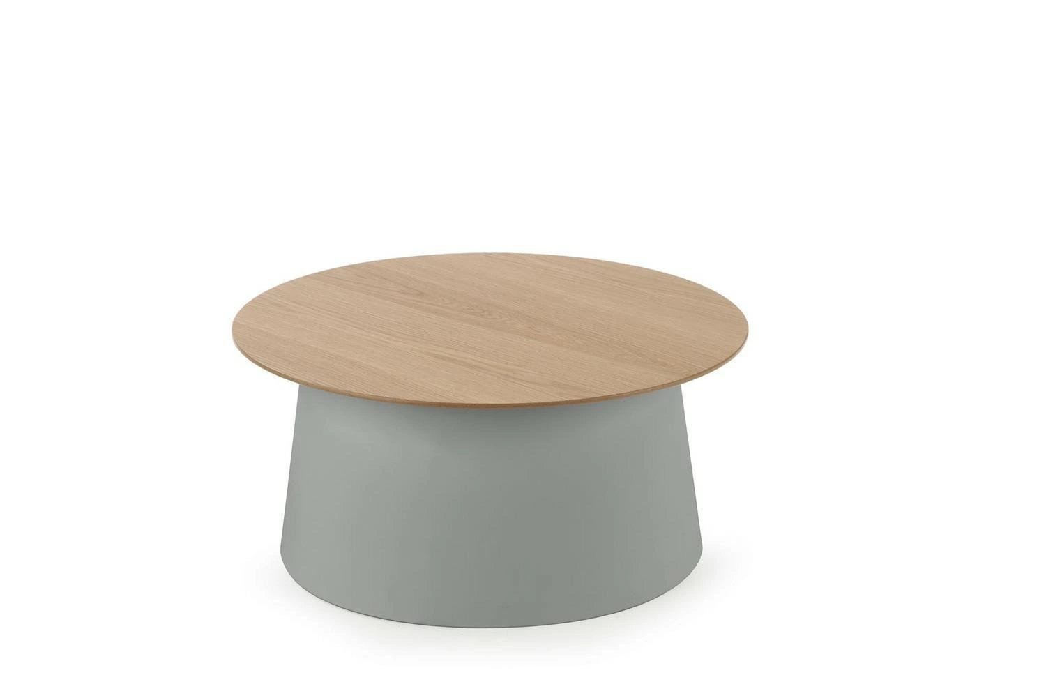Stolik kawowy Alter to model, który doskonale wpisuje się w najnowsze trendy aranżacyjne. Okrągły kształt blatu sprzyja swobodnym spotkaniom przy kawie, a naturalny kolor drewna świetnie komponuje się z szarością nowoczesnej podstawy. Dzięki półmatowemu wykończeniu blat jest odporny na zarysowania oraz łatwy do utrzymania w czystości – wystarczy przetrzeć go wilgotną ściereczką, by odzyskał świeży wygląd. To idealny wybór do wnętrz, w których liczy się zarówno estetyka, jak i praktyczność.