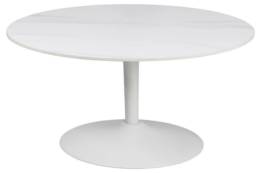 Stwórz zachęcającą atmosferę w swoim domu dzięki eleganckiemu stolikowi kawowemu Malta. Wyposażony w ceramiczny blat o wyglądzie białego marmuru i podstawę w kształcie trąbki wykonaną z matowego, białego metalu malowanego proszkowo, ten okrągły stolik kawowy jest zarówno stylowy, jak i praktyczny.