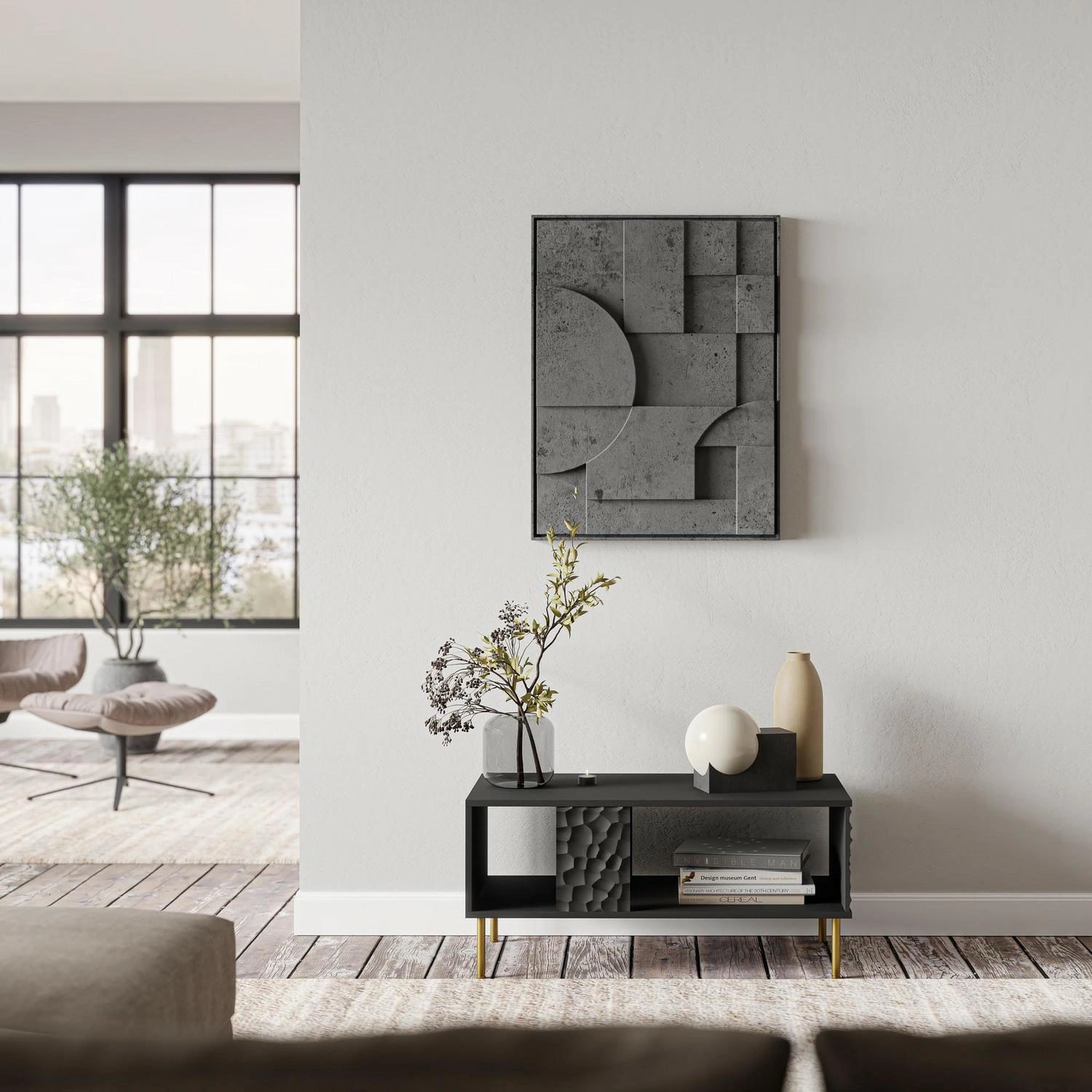 Stolik kawowy z kolekcji Afir to niezwykle eleganckie i stylowe rozwiązanie, które doda świeżości i wyrafinowania do Twojego wnętrza. Jego wymiary - 92/50/43 cm - sprawiają, że jest idealnym rozmiarem do każdego salonu, niezależnie od jego wielkości.Wykonany z wysokiej jakości materiałów, takich jak płyta meblowa laminowana, MDF laminowany i polipropylen, stolik jest nie tylko trwały, ale także łatwy do utrzymania w czystości. Dzięki laminowanej powłoce, można go łatwo przetrzeć wilgotną szmatką, aby usunąć wszelkie plamy czy zabrudzenia.Jego kolor - czarny z złotymi akcentami - dodaje mu niezwykłego uroku i luksusowego wyglądu.