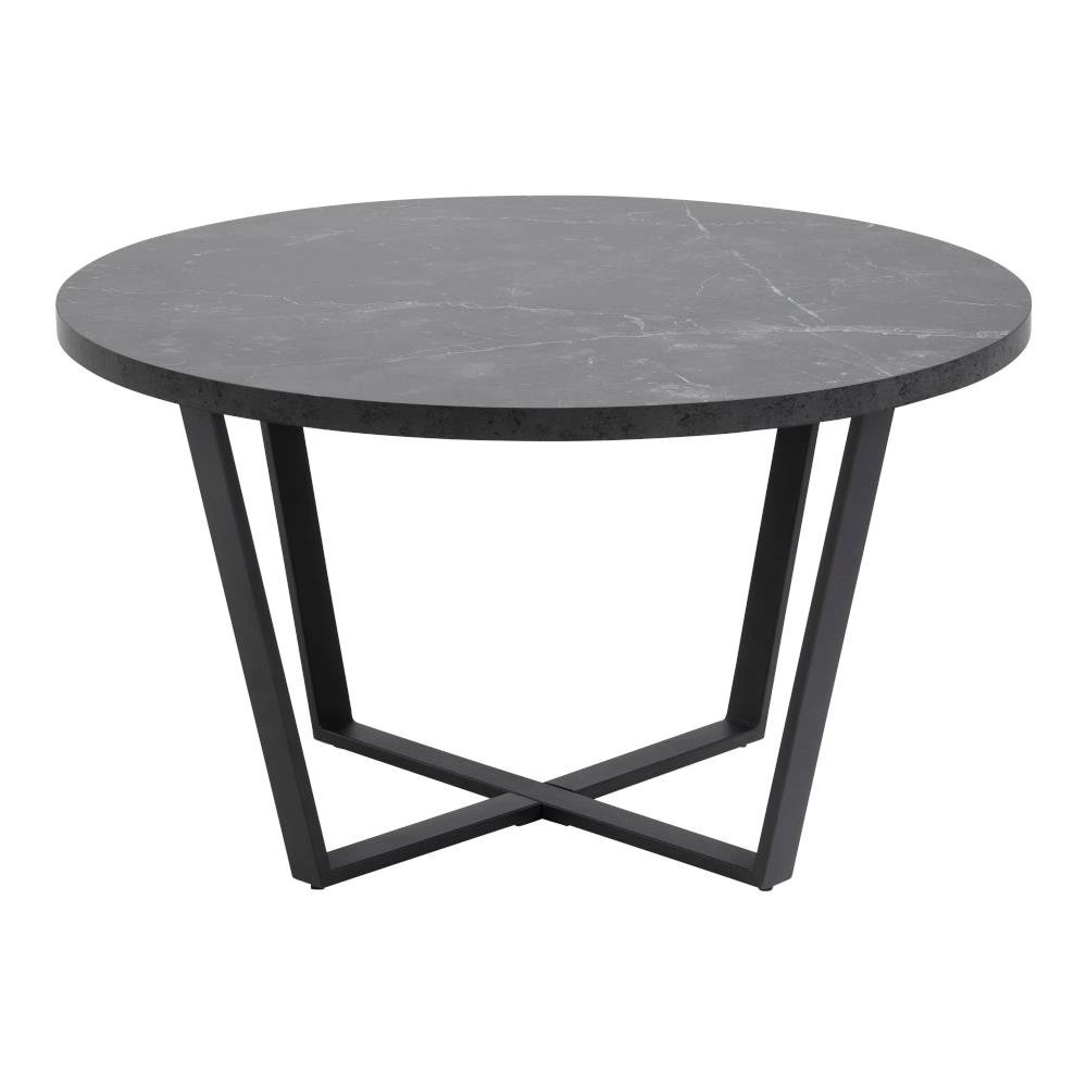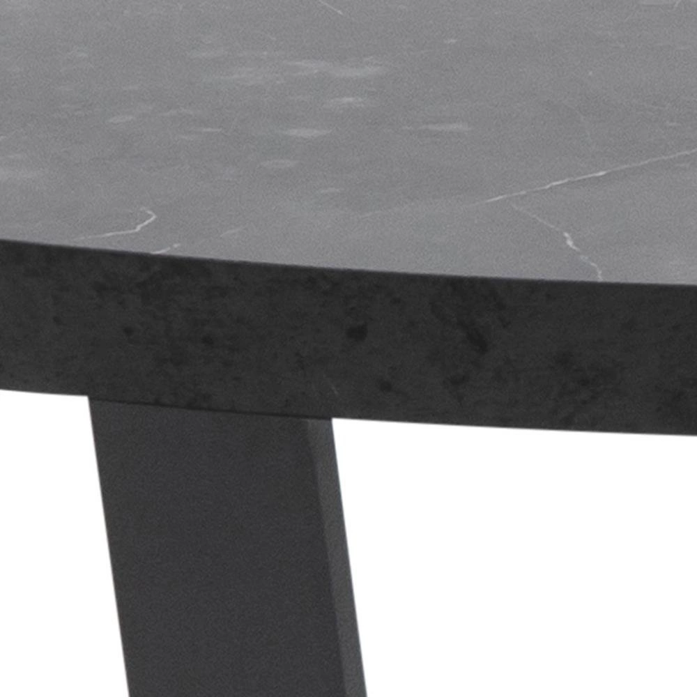 Stolik kawowy Amble jest industrialnym blatem, który ozdobi nowoczesny salon. Blat stolika został zrobiony z płyty MDF pokrytej okleiną imitującą czarny marmur. Podstawą stolika są metalowe pomalowane proszkowo na czarno nogi. Ciekawy kształt stolika przykuwa uwagę. Waga: 10 kg.