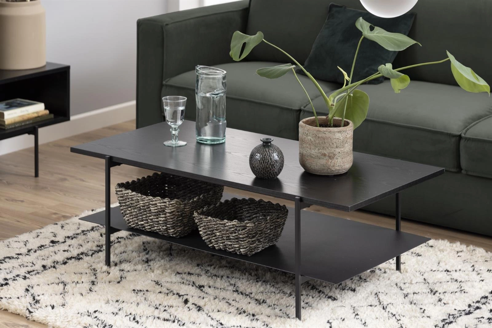 Styl industrialny wciąż jest jednym z najbardziej popularnych aranżacji w ostatnim czasie. Jego surowość, estetyka i ergonomia to cechy, które w połączeniu z niepowtarzalnym wyposażeniem tworzą wyjątkowy klimat, jaki uwielbiamy. Duch fabryki zamknięty w minimalistycznych meblach o uwydatnionej konstrukcji to obowiązkowy element takiej przestrzeni. Czarny STOLIK KAWOWY ANGUS to jeden z takich mebli. Kolekcja o tej samej nazwie to dzieło duńskiej firmy Actona, która stworzyła serię industrialnych mebli utrzymanych w eleganckiej czerni. Stolik z dodatkową półką, będzie doskonałym uzupełnieniem kącika wypoczynkowego w mieszkaniu jak i w eleganckim biurze. Czarne blaty stolika powstały z wytrzymałej i odpornej na zniszczenia płyty MDF wykończonej okleiną imitującą drewno jesionu. Stelaż natomiast, który je podtrzymuje, zrobiony jest z metalu malowanego proszkowo na czarno. Dodatkowo pod nogami znajdują się plastikowe nakładki zabezpieczające podłogę przed zarysowaniem. Ten uniwersalny stolik kawowy będzie ciekawym akcentem we wnętrzach w stylu industrialnym.