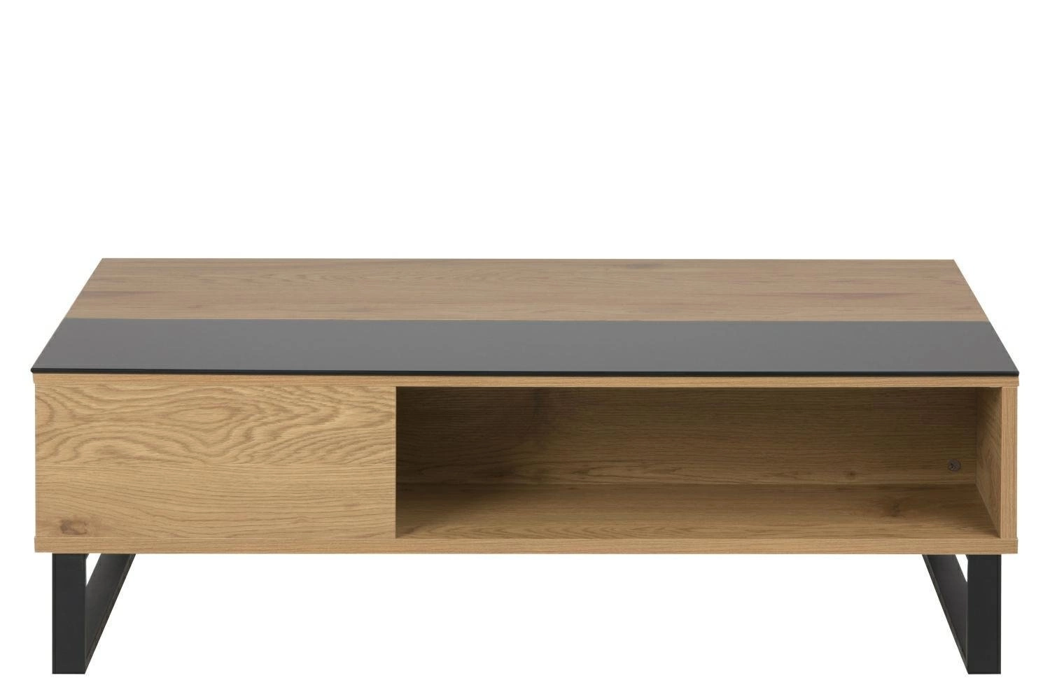 Stolik kawowy Azalea prostokątny do salonu dąb i szkło z podnoszonym blatem schowkiem półkami industrialny Actona