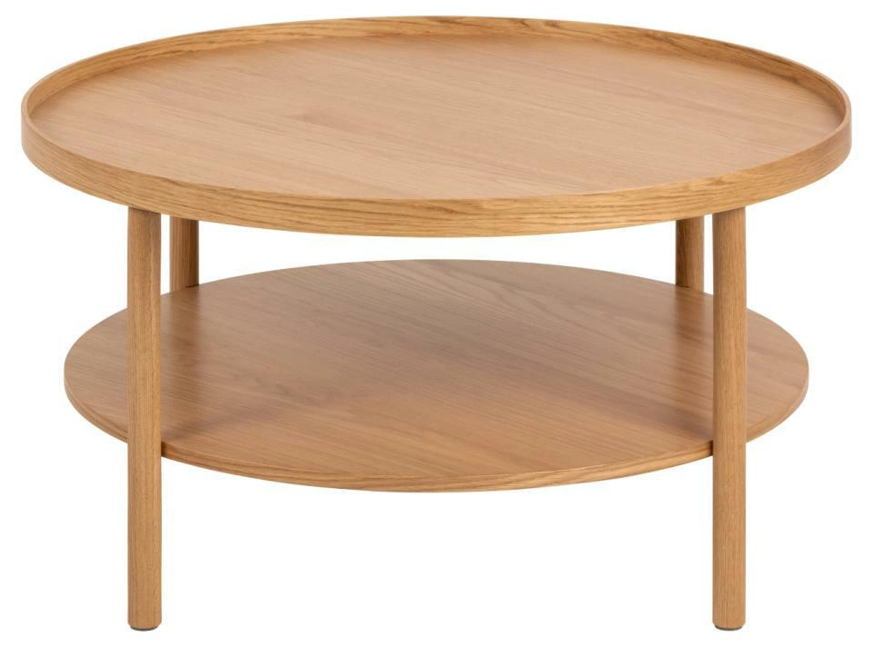 Stolik kawowy Banbury o średnicy 80cm to nie tylko praktyczny mebel, ale także efektowna dekoracja do każdego wnętrza. Wykonany z forniru dębowego, lakierowanego na kolor naturalnego dębu, zachwyca estetyką i elegancją. Okrągły blat o gładkich krawędziach to doskonałe miejsce na ulubioną filiżankę kawy, a także na drobne dekoracje, które podkreślą charakter pomieszczenia. Dodatkową funkcjonalnością jest półka, która pozwoli na przechowywanie ulubionych czasopism czy książek zawsze pod ręką.