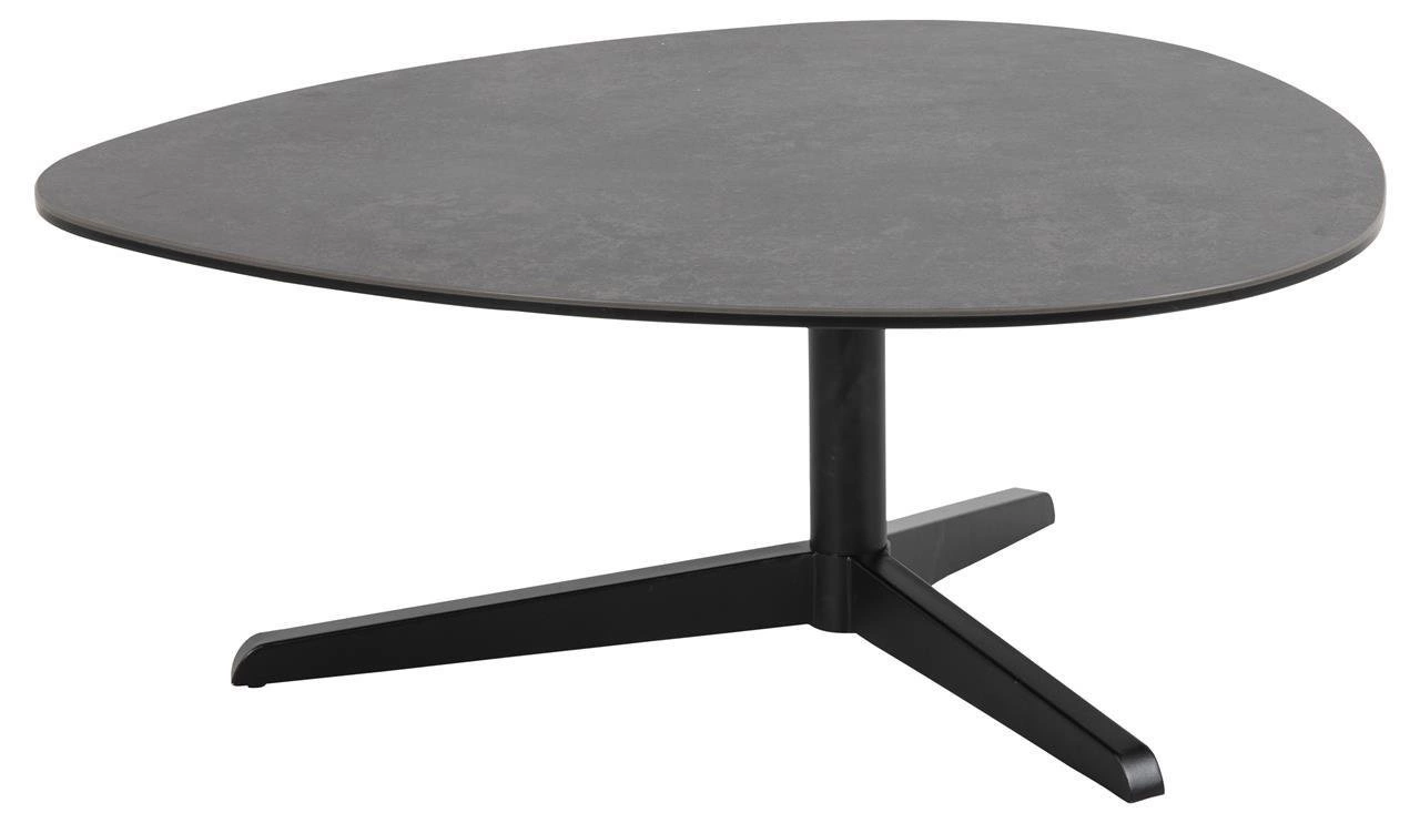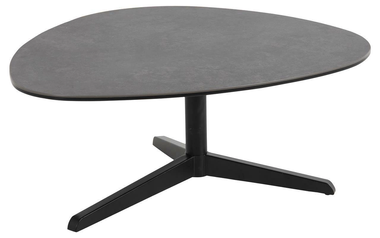 Stolik Barnsley to funkcjonalny stolik do nowoczesnych wnętrz. Blat o nieregularnym kształcie został wykonany ze szkła i ceramiki, które charakteryzuje się wytrzymałością. Dzięki zastosowaniu szklanego blatu i metalowej podstawy stolik jest niezwykle łatwo utrzymać w czystości. Stolik wykonany został z metalowej podstawy malowanej proszkowo na kolor czarny. Trójnożna podstawa jest oparciem dla szklanego, dymionego blatu o grubości 10 mm. Nogi stolika wyposażone są w stopki z tworzywa, które zapobiegają ślizganiu się stolika i jednocześnie zabezpieczają podłogę przed porysowaniem.