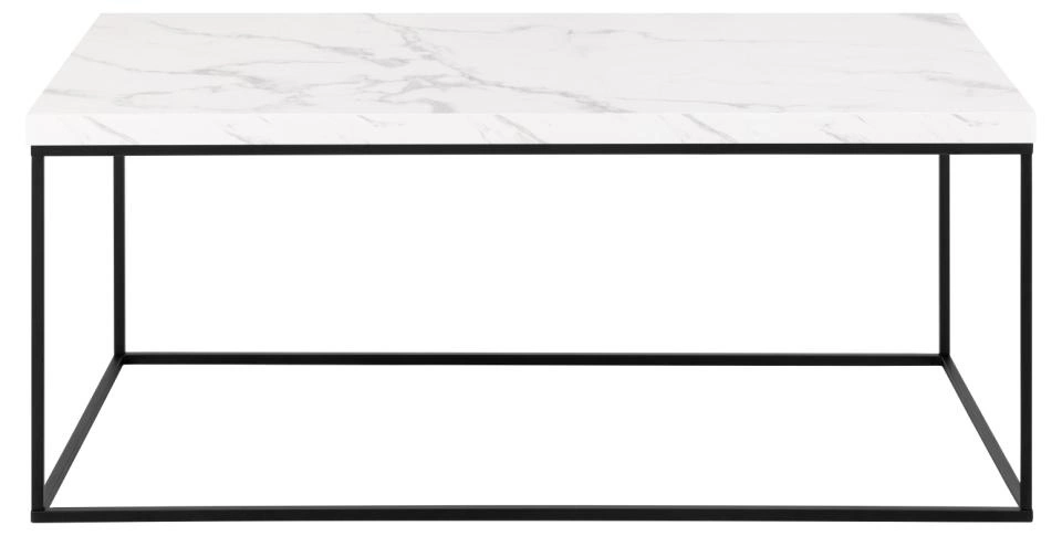 Stolik kawowy Barossa 110x55 cm to nowoczesny mebel, który zachwyca elegancją i praktycznym designem. Jego prostokątny blat został wykonany z płyty MDF, pokrytej okleiną imitującą biały marmur, co nadaje mu luksusowy wygląd. Subtelne wykończenie marmurowe w połączeniu z prostymi liniami tworzy stylowy element, który świetnie pasuje do współczesnych wnętrz. Stolik ma wymiary 110x55 cm, dzięki czemu zapewnia dużą powierzchnię użytkową, idealną na kawę, książki czy dekoracje.