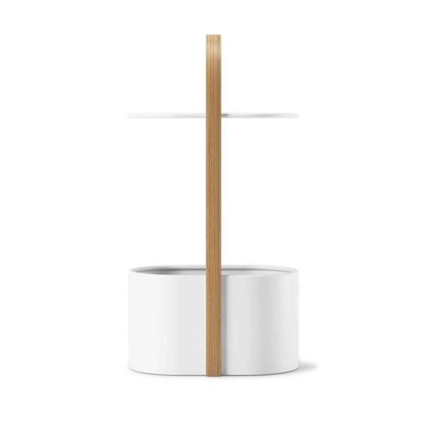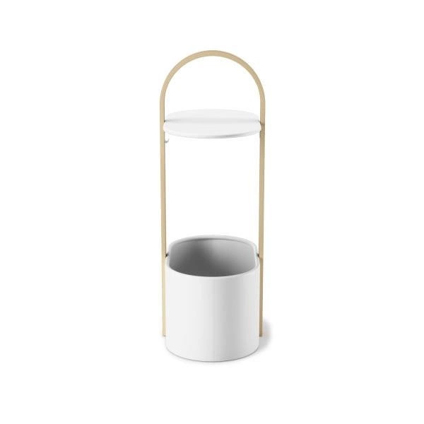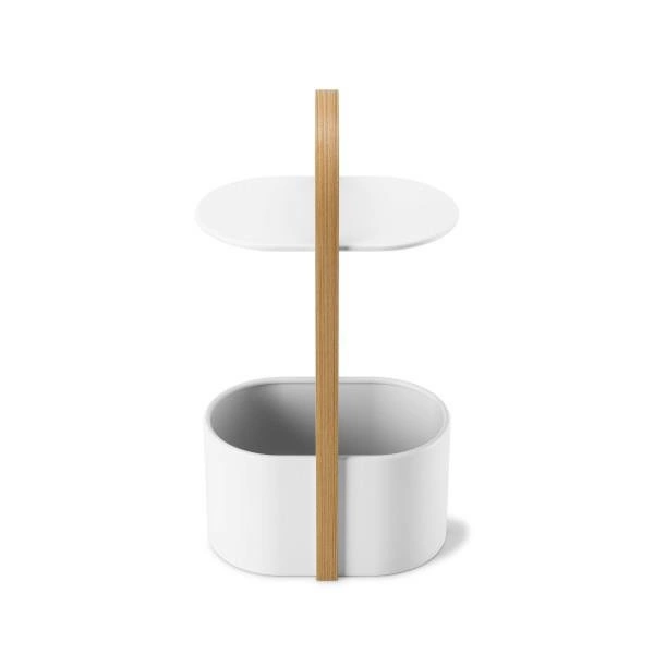 Stolik Bellwood to nowoczesne rozwiązanie dla niepoukładanych kabli i przedmiotów. Wykonany z metalu i drewna, stolik może być używany w dowolnej przestrzeni, zapewniając zarówno wielofunkcyjne, jak i wyrafinowane miejsce do przechowywania. Stolik ma haczyk pod górnym blatem, który został stworzony do przytrzymywania przewód ładujących urządzenia. Stolik został wyposażony również w boczny otwór na kable zasilające. Blat stanowi idealne miejsce na telefon, książkę lub kieliszek wina, a pojemnik pod spodem doskonale nadaje się na kable lub większe przedmioty, takie jak koce lub książki.