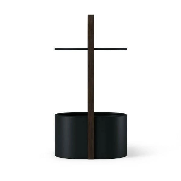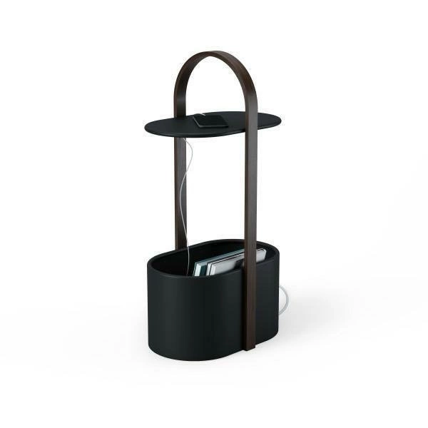 Stolik Hub to nowoczesne rozwiązanie dla niepoukładanych kabli i przedmiotów. Wykonany z metalu i drewna, stolik może być używany w dowolnej przestrzeni, zapewniając zarówno wielofunkcyjne, jak i wyrafinowane miejsce do przechowywania. Stolik ma haczyk pod górnym blatem, który został stworzony do przytrzymywania przewód ładujących urządzenia. Stolik został wyposażony również w boczny otwór na kable zasilające. Blat stanowi idealne miejsce na telefon, książkę lub kieliszek wina, a pojemnik pod spodem doskonale nadaje się na kable lub większe przedmioty, takie jak koce lub książki.