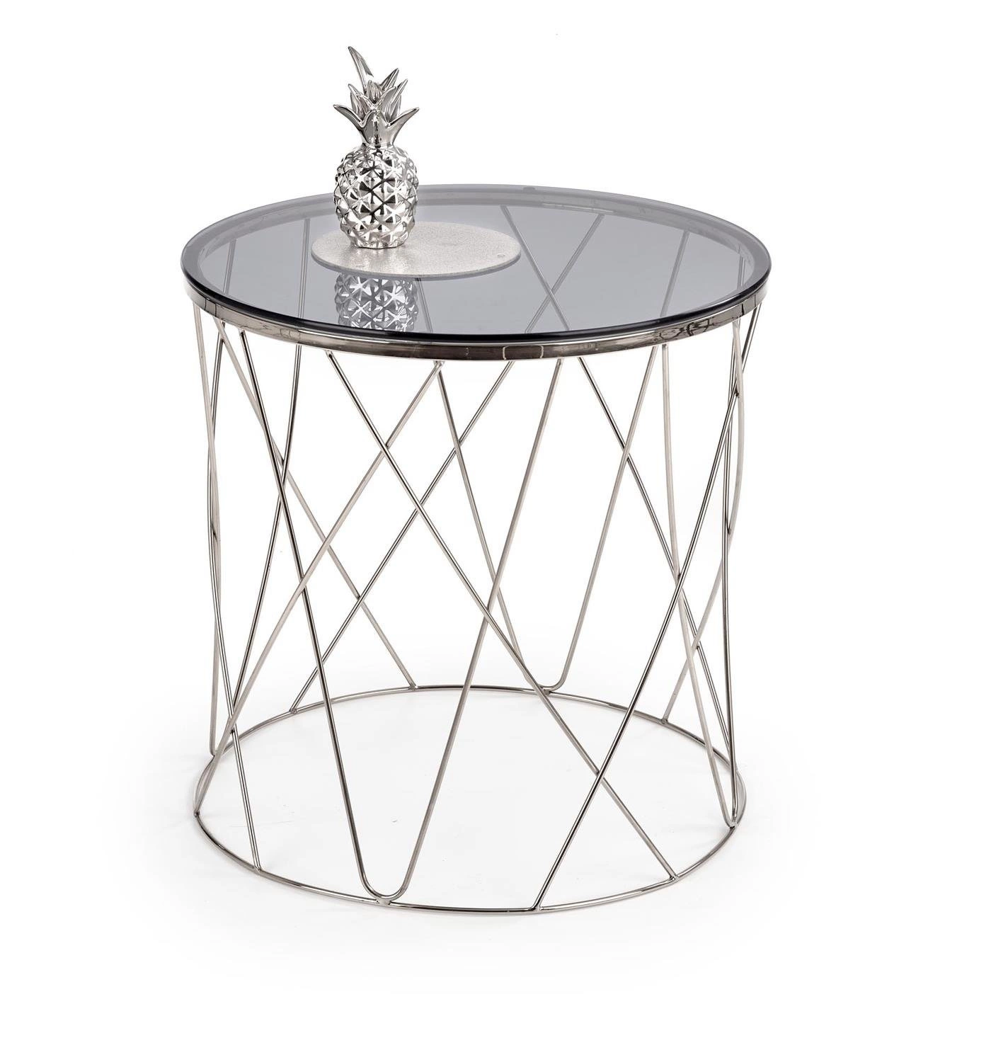 Wymiary 55/55 cm nadają stolikowi intymny, zachęcający charakter, który zachęca do zajęcia miejsca i relaksu. Przydymione szkło jest zabarwione na subtelny odcień szarości, dzięki czemu jego błyszczący połysk pięknie odbija światło, a chromowana podstawa idealnie kontrastuje z blatem.