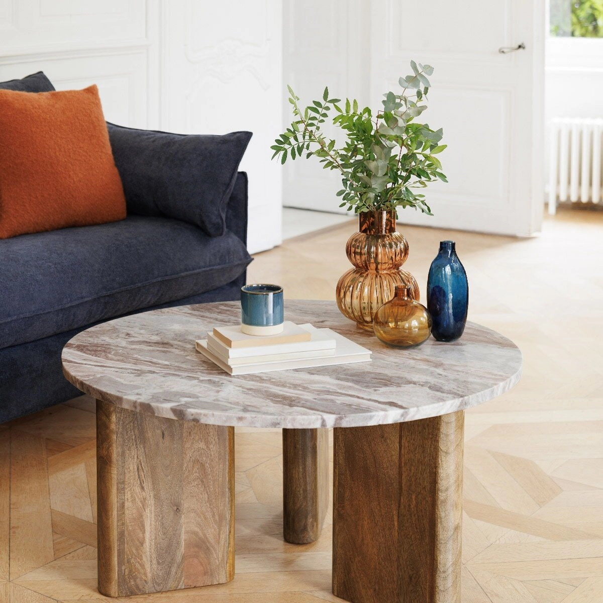 - Stolik kawowy Coppa to połączenie marmuru i drewna mango, które gwarantuje trwałość i unikatowy wygląd
