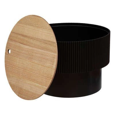 Okrągły stolik kawowy Enola L czarny | Atmosphera Okrągły stolik kawowy Enola od Atmosphery doda nowoczesnego, unikalnego akcentu do Twojej przestrzeni. Wykonany z wytrzymałej płyty MDF i wyposażony w fornirowany blat imitujący drewno, mebel jest idealny do małych wnętrz. Dodatkowo posiada otwór w blacie, który służy zarówno jako uchwyt, jak i tajne miejsce do przechowywania. Stwórz stylowy i szykowny wygląd ze stolikiem kawowym Enola! Wyjątkowy i nowoczesny mebel wniesie indywidualny styl do każdego pomieszczenia. Okrągła konstrukcja dodaje odrobinę współczesnej elegancji, a połączenie wąskiej, gładkiej części i szerszej części z delikatnym frezowaniem zapewnia ponadczasowy i trwały urok. Solidna płyta MDF jest bardzo wytrzymała i jest dodatkowo uzupełniona blatem z okleiną imitującą drewno. Dzięki otworowi w blacie, który działa jak uchwyt, można podnieść blat i przechowywać w stoliku rozmaite przedmioty. Idealny do dodania oszałamiającego akcentu do każdego małego wnętrza, stolik kawowy Enola jest niezbędnym elementem, który bez wysiłku wzbogaci każde pomieszczenie. O tym warto pamiętać! Unikalny design tworzy nowoczesny i stylowy wygląd pasujący do każdego domu Trwałe materiały zapewniają długotrwałe użytkowanie Ukryty schowek zapewnia dodatkową wartość funkcjonalną