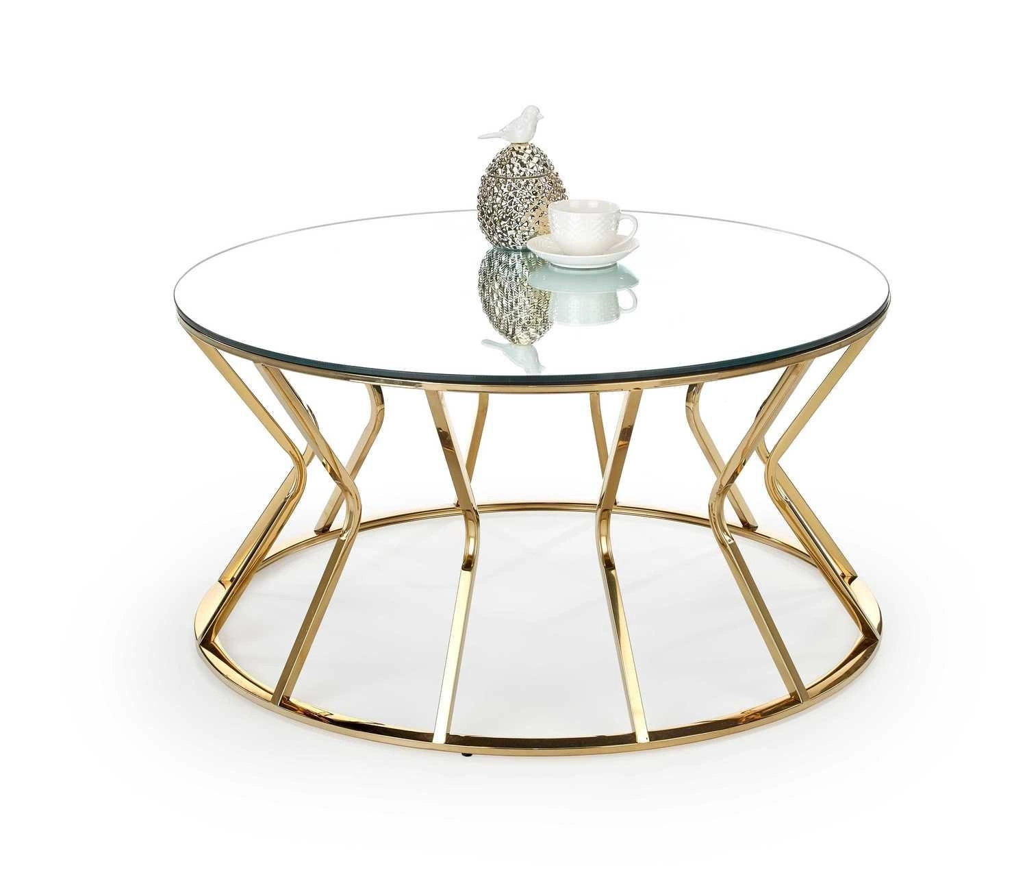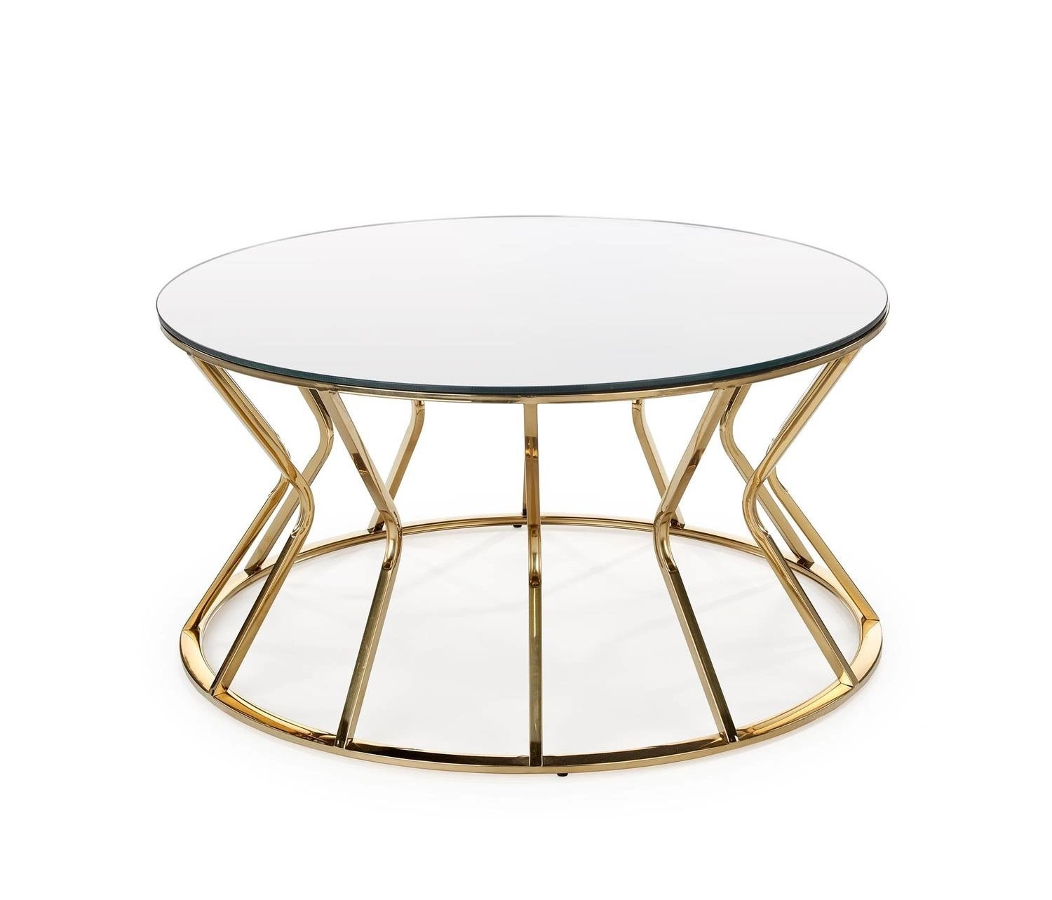 Uzyskaj nowoczesny, efektowny wygląd swojego salonu dzięki temu szklanemu okrągłemu stolikowi kawowemu od Intesi. Wyposażony w złotą, błyszczącą ramę i przezroczysty, szklany blat, oszałamiający element jest idealny do nadania blasku każdej przestrzeni! Ponadto jest wykonany ze stali nierdzewnej, więc wiesz, że będzie trwały.