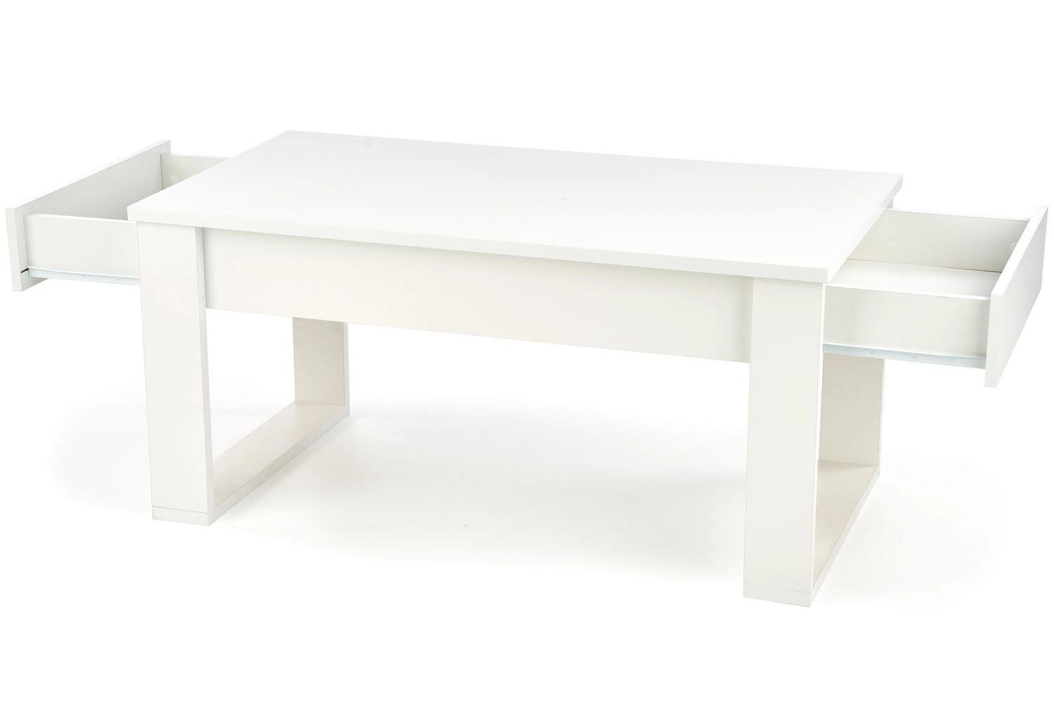 Przedstawiamy stolik kawowy Halk - połączenie nowoczesnego stylu industrialnego i klasycznych skandynawskich wzorów. Idealny do każdego salonu, stolik z płyty meblowej okleinowanej na biało posiada dwie szuflady, ułatwiające przechowywanie czasopism lub innych przedmiotów, których nie chcesz, eksponować Twoim gościom. Dzięki wymiarom 110/60/52 cm (szerokość, głębokość, wysokość), prostokątny stolik świetnie nadaje się na rodzinne wieczory gier lub do postawienia przekąsek podczas maratonów filmowych. 2 płozy zapewniają bezpieczną podstawę, dzięki czemu możesz mu zaufać w kwestii stabilności. Czyszczenie jest bardzo proste - wystarczy przetrzeć blat ciepłą wodą z mydłem i będzie wyglądał jak nowy! Przygotuj się na świeżą aktualizację swojego domu - ponieważ życie powinno być przeżywane w stylu ze stolikiem kawowym Halk.