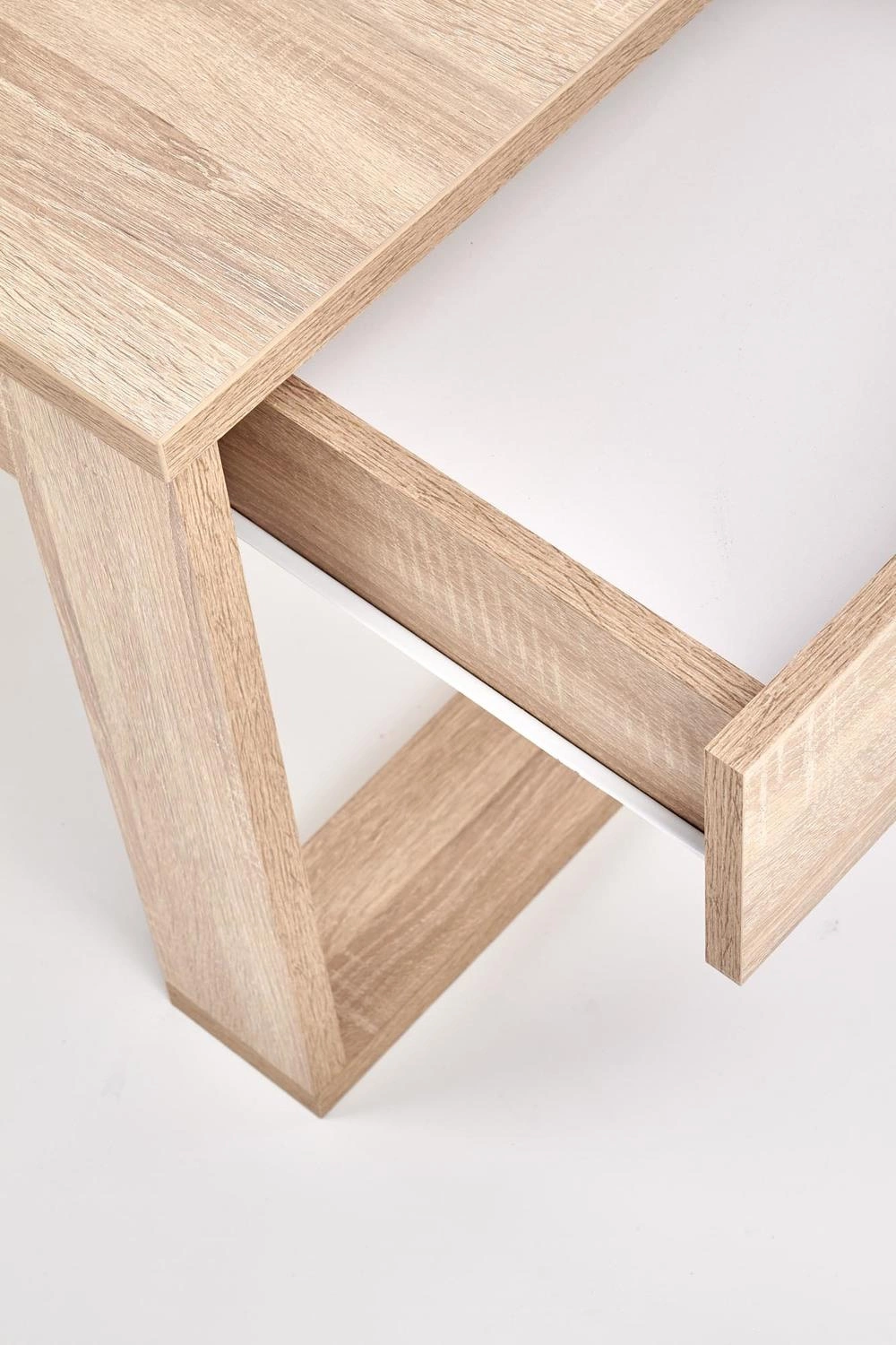 Przedstawiamy stolik kawowy Halk - połączenie nowoczesnego stylu industrialnego i klasycznych skandynawskich wzorów. Idealny do każdego salonu, stolik z płyty meblowej okleinowanej w kolorze dębu sonoma posiada dwie szuflady, ułatwiające przechowywanie czasopism lub innych przedmiotów, których nie chcesz, eksponować Twoim gościom. Dzięki wymiarom 110/60/52 cm (szerokość, głębokość, wysokość), prostokątny stolik świetnie nadaje się na rodzinne wieczory gier lub do postawienia przekąsek podczas maratonów filmowych. 2 płozy zapewniają bezpieczną podstawę, dzięki czemu możesz mu zaufać w kwestii stabilności. Czyszczenie jest bardzo proste - wystarczy przetrzeć blat ciepłą wodą z mydłem i będzie wyglądał jak nowy! Przygotuj się na świeżą aktualizację swojego domu - ponieważ życie powinno być przeżywane w stylu ze stolikiem kawowym Halk.