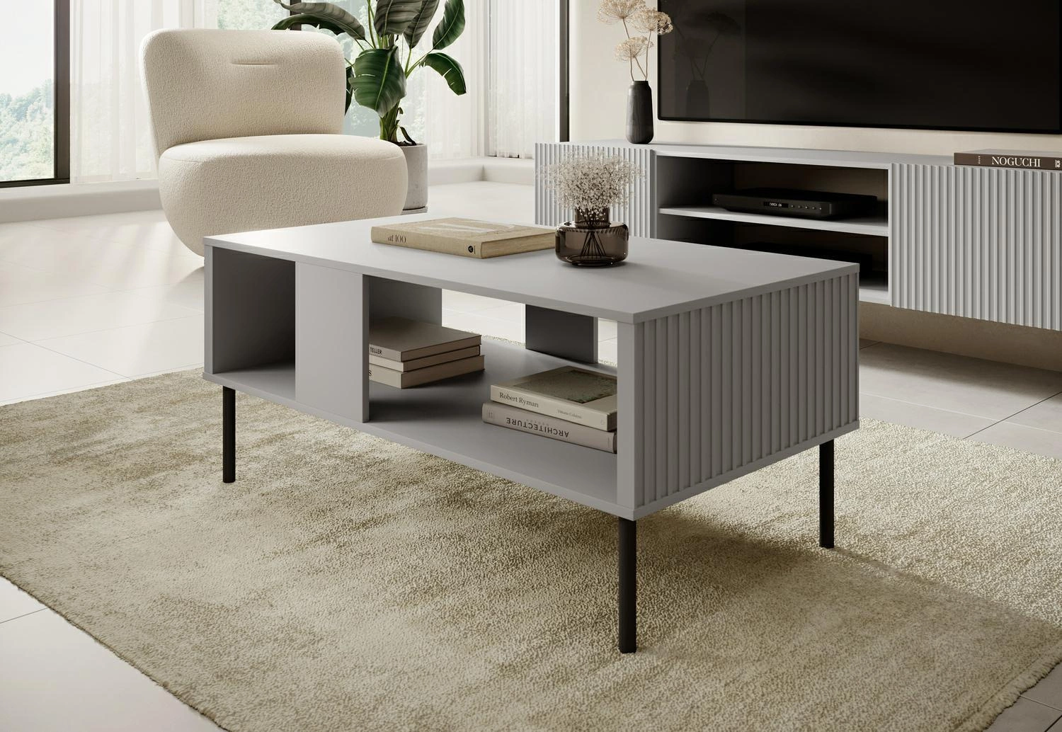 Dzięki temu łatwo dopasujesz stolik do różnych aranżacji wnętrz, niezależnie od stylu, w jakim jest urządzone Twoje mieszkanie.Jednak to nie wszystko, co wyróżnia ten stolik. Ryflowane fronty mebli to ostatni trend w modzie wnętrzarskiej, który dodaje meblom dodatkowego charakteru i oryginalnego wyglądu. Dzięki nim stolik nabiera wyjątkowego charakteru, który wyróżnia go spośród innych, standardowych rozwiązań. To doskonały sposób na nadanie swojemu wnętrzu niepowtarzalnego stylu i elegancji.
