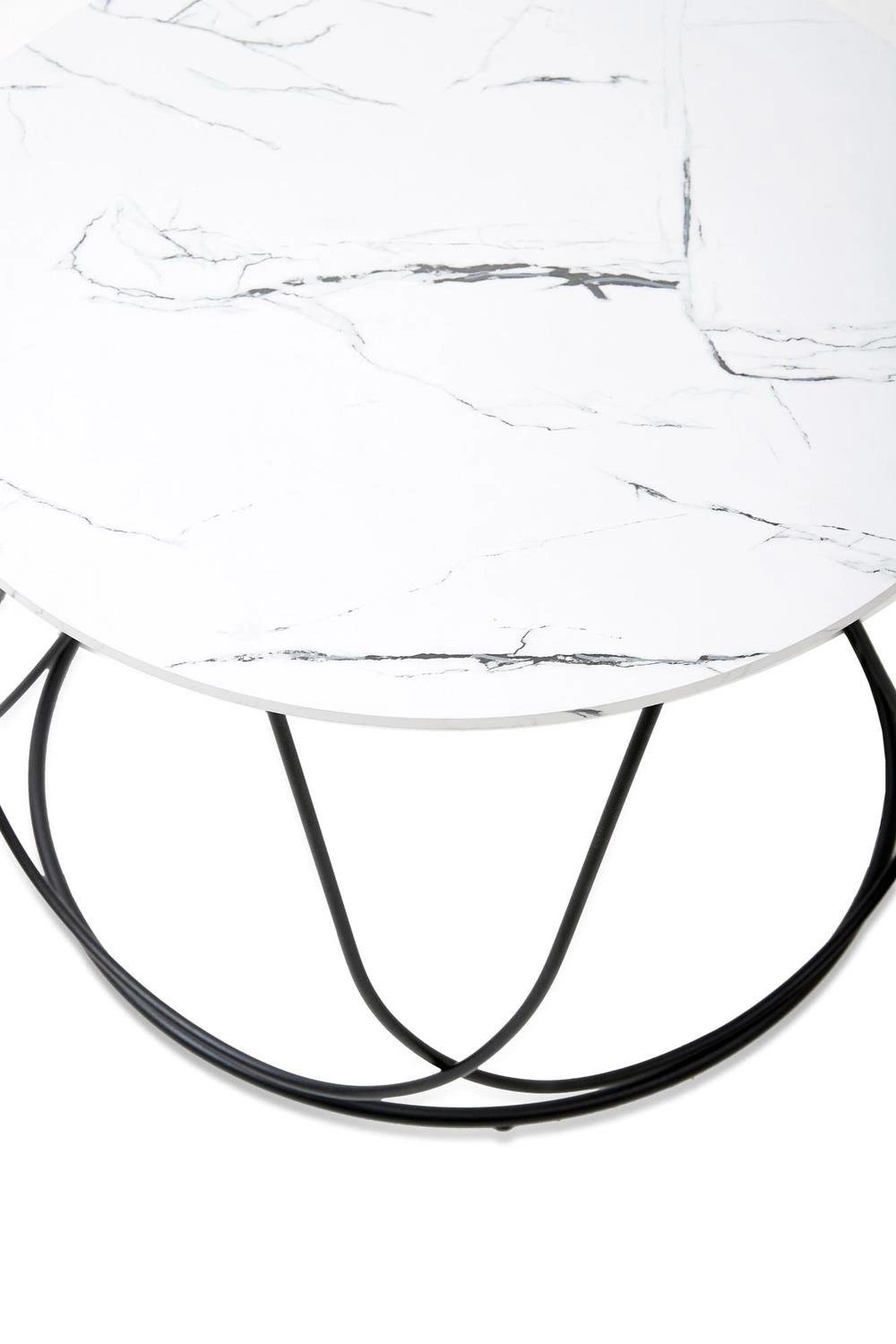Stolik kawowy Jenna to niezwykle eleganckie i luksusowe dzieło sztuki, które doskonale pasuje do wnętrz utrzymanych w stylu glamour. Zestawienie białego marmuru z czarnymi elementami tworzy efektowną i wyrafinowaną kompozycję, która przyciąga wzrok i nadaje pomieszczeniu wyjątkowego charakteru.