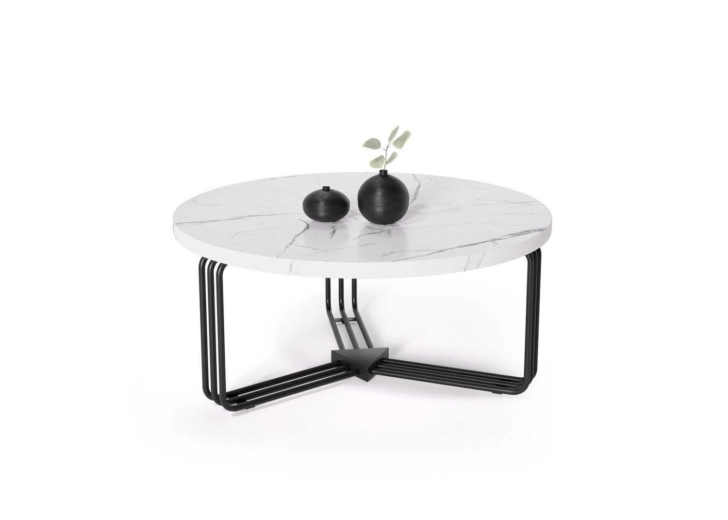 Powitaj stylowy stolik kawowy Lintica w swoim domu! Dzięki prostemu wyglądowi i eleganckiemu, nowoczesnemu wzornictwu, ten wyjątkowy mebel natychmiast doda blasku każdemu pomieszczeniu. Wykonany ze starannie malowanej proszkowo stali dla eleganckiego wyglądu i trwałości, jest wyposażony w oszałamiający okrągły blat z fornirowanej płyty MDF w okleinie w kolorze białego marmuru dla maksymalnego efektu. Idealne akcesorium do zakotwiczenia aranżacji siedzeń w salonie lub pokoju rozrywki. Kreatywny, a jednocześnie ponadczasowy stolik, jest doskonałym dodatkiem do każdej przestrzeni poszukującej współczesnego uroku.