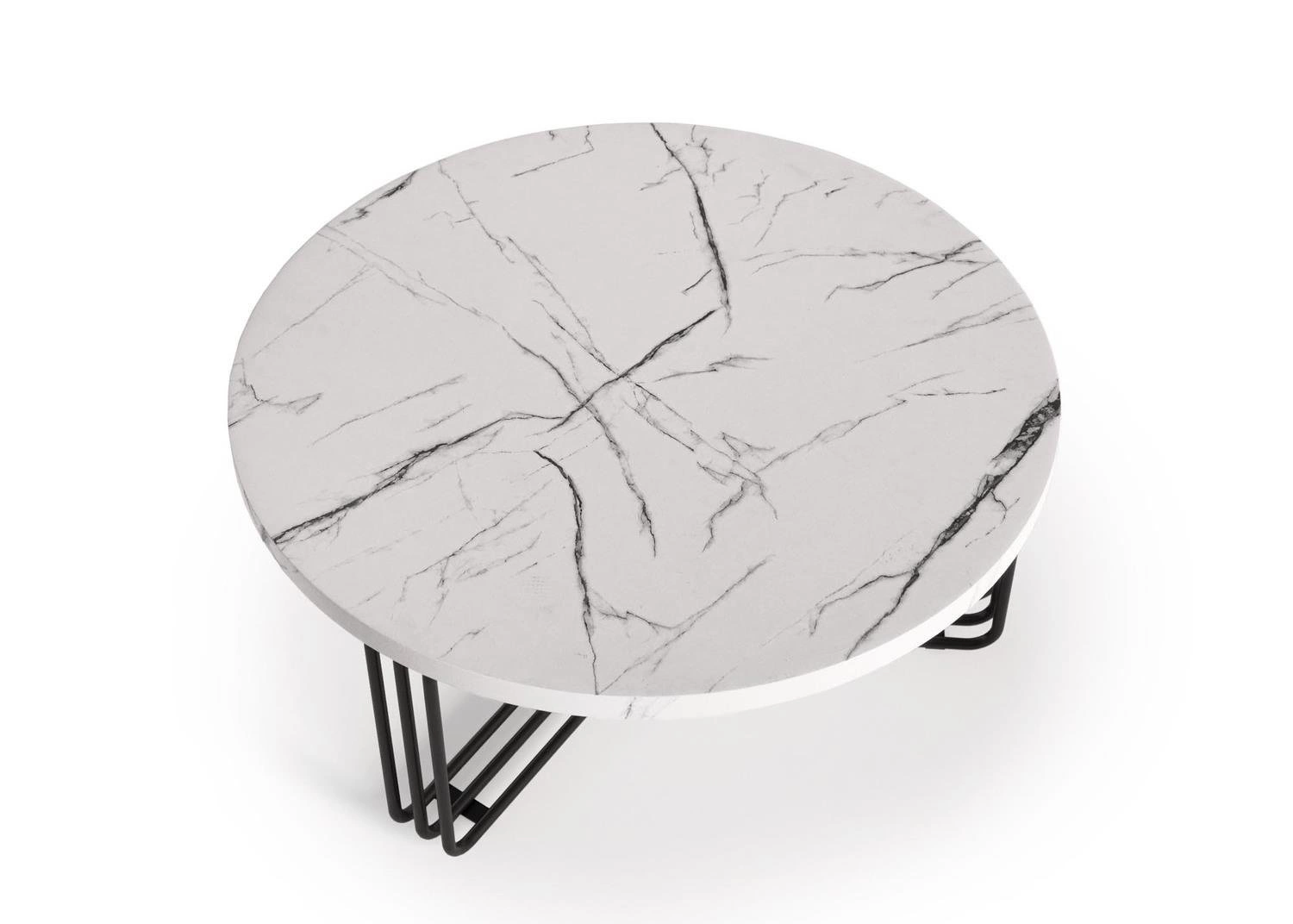 Podnieś wystrój swojego salonu dzięki stylowemu i nowoczesnemu stolikowi kawowemu Lintica. Wykonany z malowanej proszkowo stali i forniru MDF, odważny biały marmurowy blat z pewnością przyciągnie uwagę wszystkich gości.