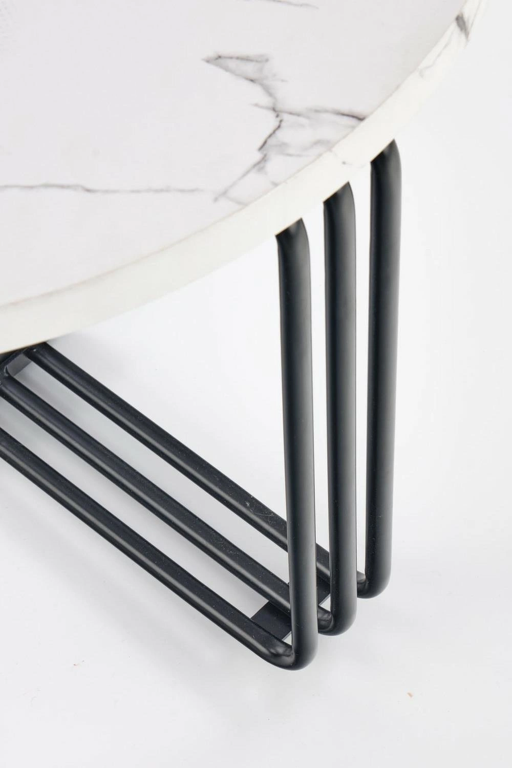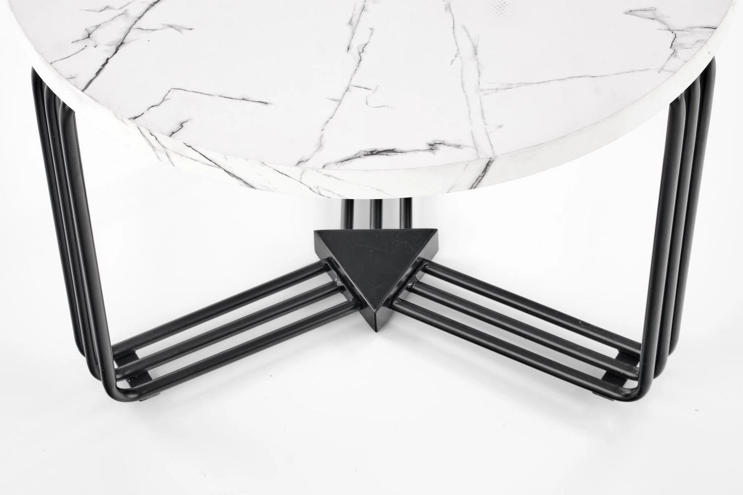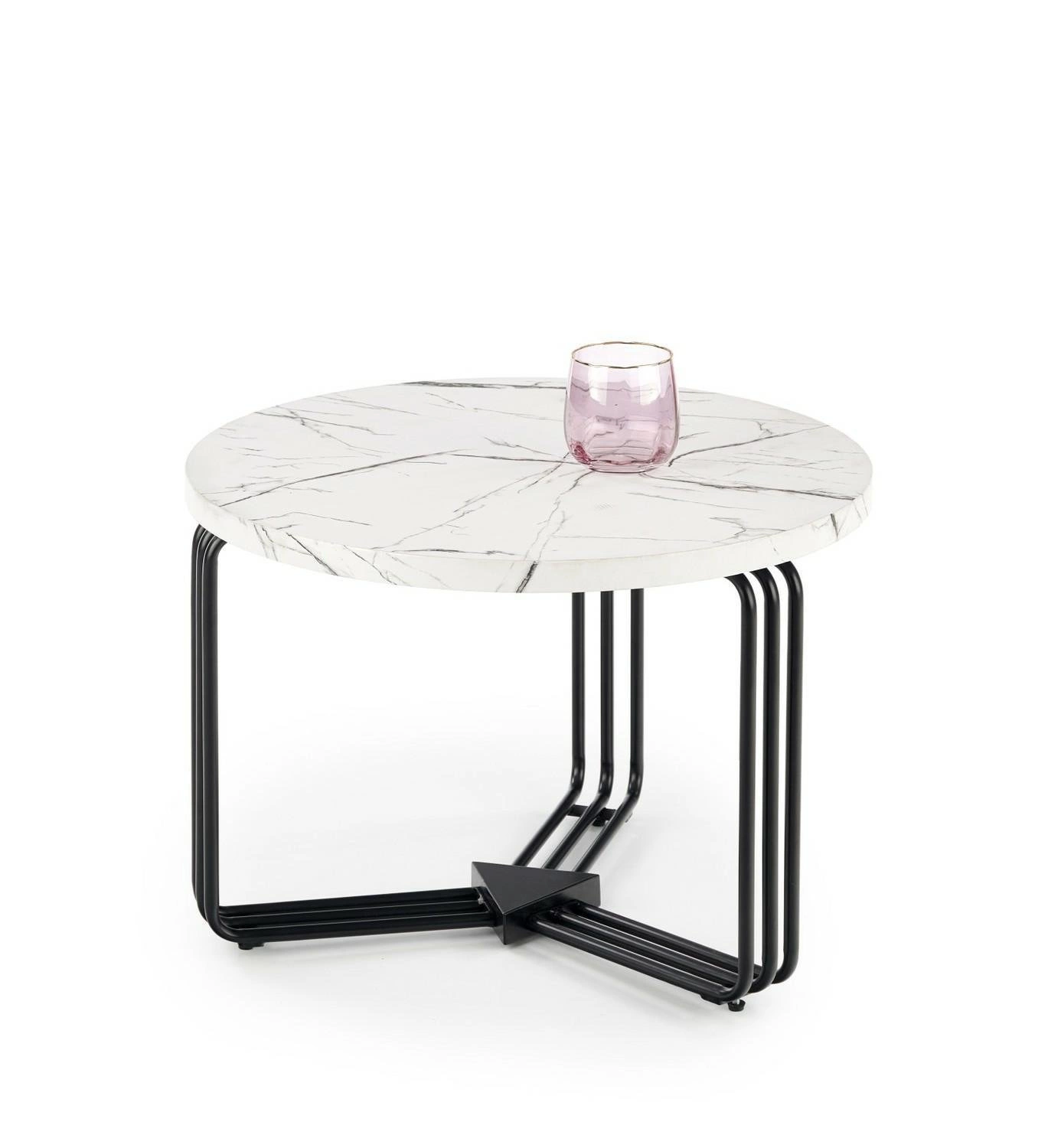 Powitaj stylowy stolik kawowy Lintica w swoim domu! Dzięki prostemu wyglądowi i eleganckiemu, nowoczesnemu wzornictwu, ten wyjątkowy mebel natychmiast doda blasku każdemu pomieszczeniu. Wykonany ze starannie malowanej proszkowo stali dla eleganckiego wyglądu i trwałości, jest wyposażony w oszałamiający okrągły blat z fornirowanej płyty MDF w okleinie w kolorze białego marmuru dla maksymalnego efektu. Idealne akcesorium do zakotwiczenia aranżacji siedzeń w salonie lub pokoju rozrywki. Kreatywny, a jednocześnie ponadczasowy stolik, jest doskonałym dodatkiem do każdej przestrzeni poszukującej współczesnego uroku.