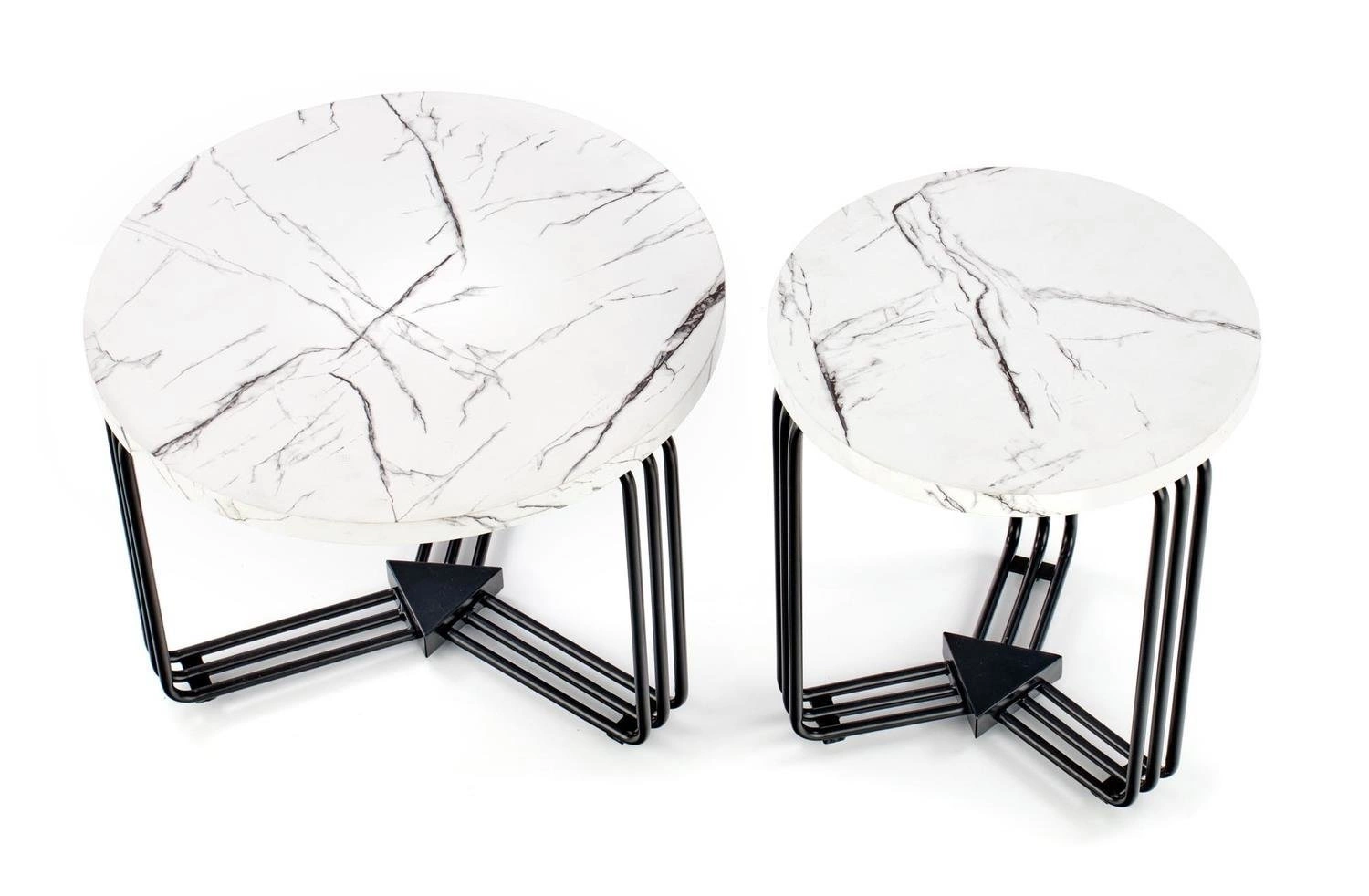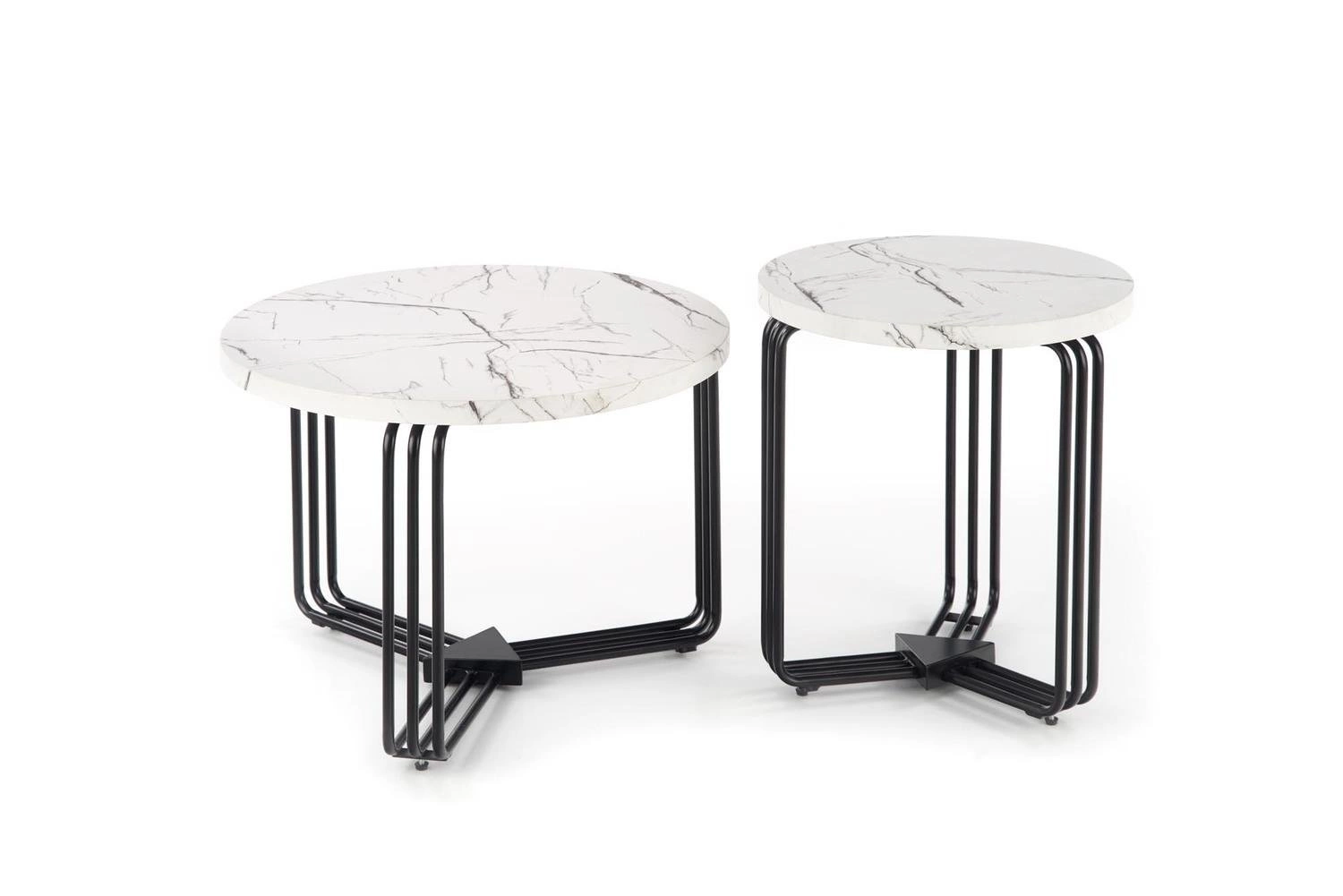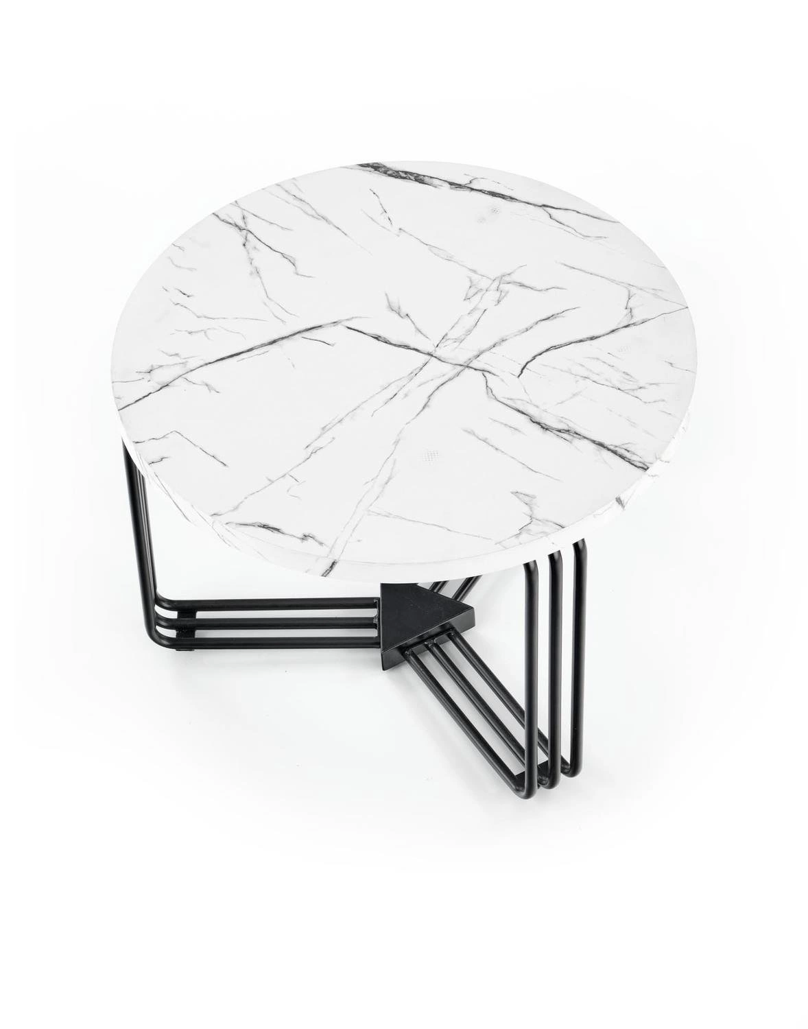 Powitaj stylowy stolik kawowy Lintica w swoim domu! Dzięki prostemu wyglądowi i eleganckiemu, nowoczesnemu wzornictwu, ten wyjątkowy mebel natychmiast doda blasku każdemu pomieszczeniu. Wykonany ze starannie malowanej proszkowo stali dla eleganckiego wyglądu i trwałości, jest wyposażony w oszałamiający okrągły blat z fornirowanej płyty MDF w okleinie w kolorze białego marmuru dla maksymalnego efektu. Idealne akcesorium do zakotwiczenia aranżacji siedzeń w salonie lub pokoju rozrywki. Kreatywny, a jednocześnie ponadczasowy stolik, jest doskonałym dodatkiem do każdej przestrzeni poszukującej współczesnego uroku.