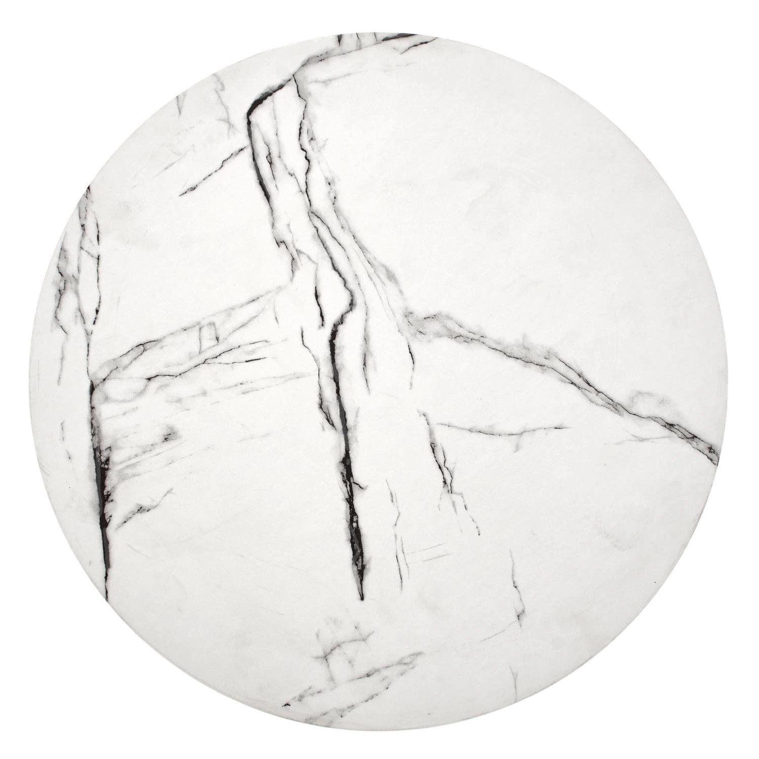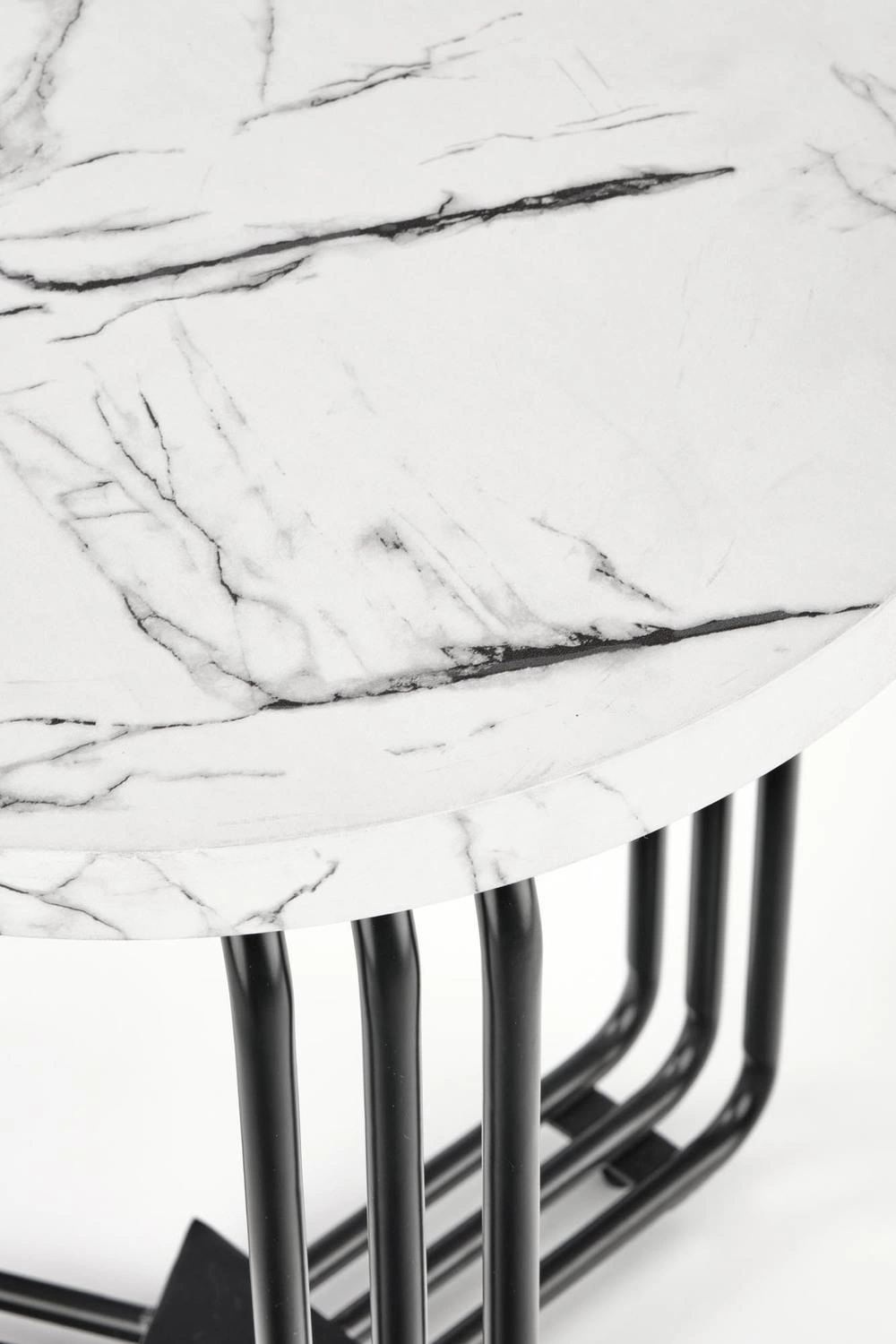 Powitaj stylowy stolik kawowy Lintica w swoim domu! Dzięki prostemu wyglądowi i eleganckiemu, nowoczesnemu wzornictwu, ten wyjątkowy mebel natychmiast doda blasku każdemu pomieszczeniu. Wykonany ze starannie malowanej proszkowo stali dla eleganckiego wyglądu i trwałości, jest wyposażony w oszałamiający okrągły blat z fornirowanej płyty MDF w okleinie w kolorze białego marmuru dla maksymalnego efektu. Idealne akcesorium do zakotwiczenia aranżacji siedzeń w salonie lub pokoju rozrywki. Kreatywny, a jednocześnie ponadczasowy stolik, jest doskonałym dodatkiem do każdej przestrzeni poszukującej współczesnego uroku.