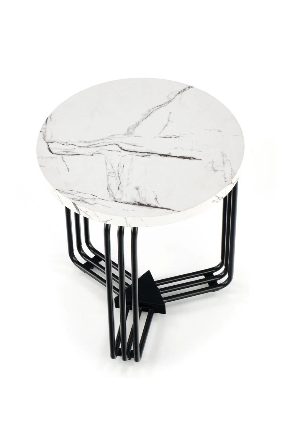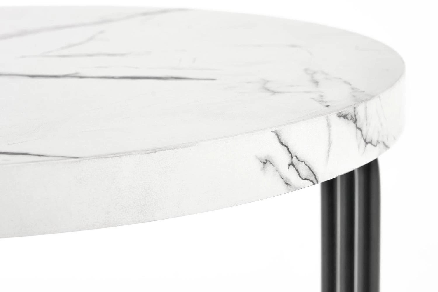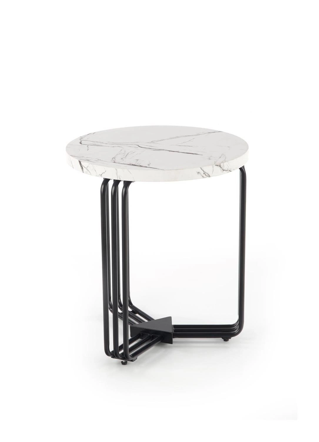 Powitaj stylowy stolik kawowy Lintica w swoim domu! Dzięki prostemu wyglądowi i eleganckiemu, nowoczesnemu wzornictwu, ten wyjątkowy mebel natychmiast doda blasku każdemu pomieszczeniu. Wykonany ze starannie malowanej proszkowo stali dla eleganckiego wyglądu i trwałości, jest wyposażony w oszałamiający okrągły blat z fornirowanej płyty MDF w okleinie w kolorze białego marmuru dla maksymalnego efektu. Idealne akcesorium do zakotwiczenia aranżacji siedzeń w salonie lub pokoju rozrywki. Kreatywny, a jednocześnie ponadczasowy stolik, jest doskonałym dodatkiem do każdej przestrzeni poszukującej współczesnego uroku.
