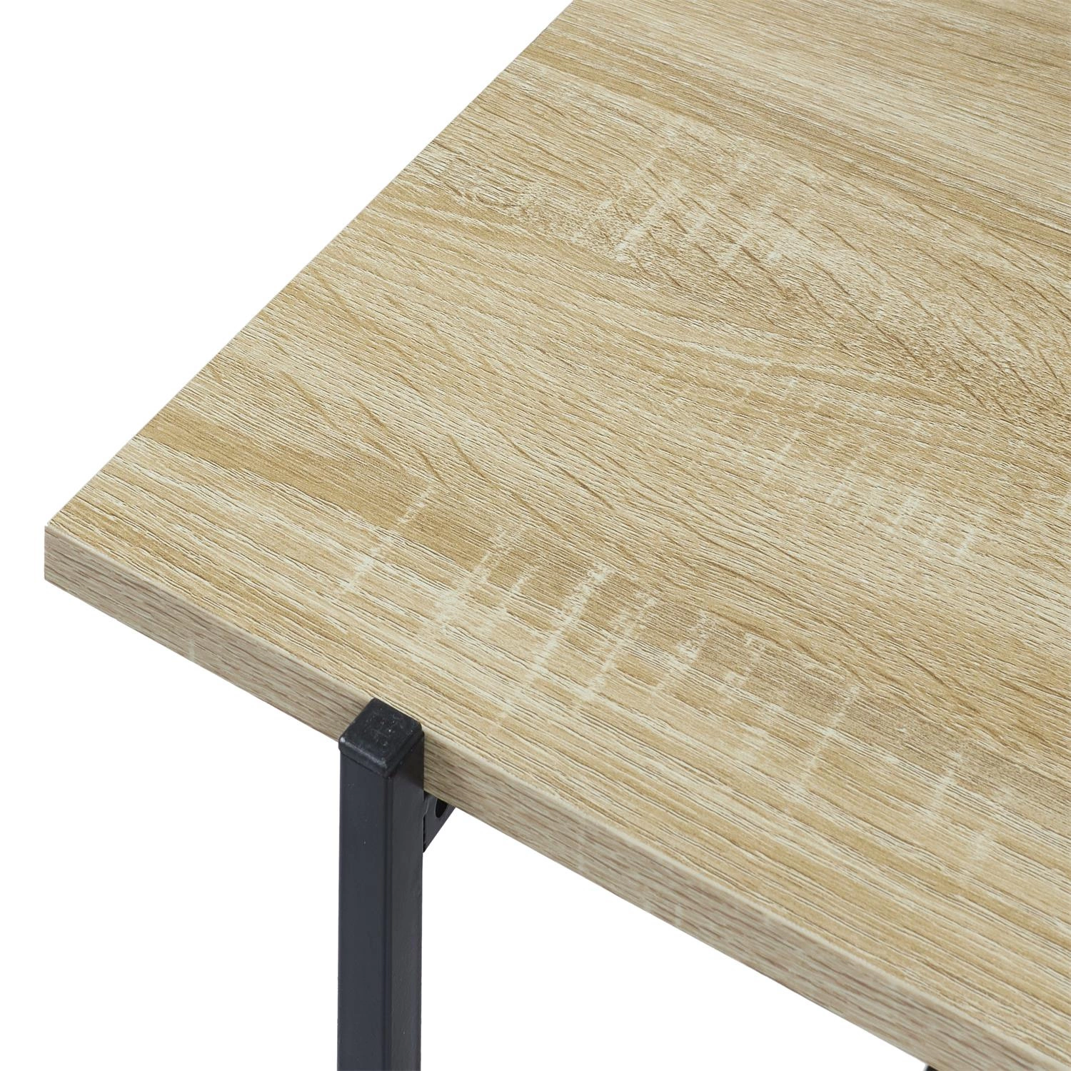 Stolik kawowy Loka to kwintesencja loftowego designu, który wprowadza do wnętrza nowoczesny i przytulny charakter. Ten minimalistyczny mebel został zaprojektowany z myślą o funkcjonalności i estetyce, sprawdzając się doskonale zarówno w salonie, jak i w kąciku wypoczynkowym biura. Blat stolika wykonany jest z wytrzymałej płyty MDF, pokrytej okleiną imitującą drewno, co nadaje mu naturalny i ciepły wygląd. Metalowa podstawa, malowana proszkowo na czarno, dodaje stolikowi nowoczesnego charakteru i zapewnia stabilność. Wymiary stolika (wysokość 45 cm, szerokość 80 cm, głębokość 50 cm) sprawiają, że jest on idealny do różnych aranżacji wnętrz, oferując dużo miejsca na odstawienie kubka herbaty, książki czy dekoracji.