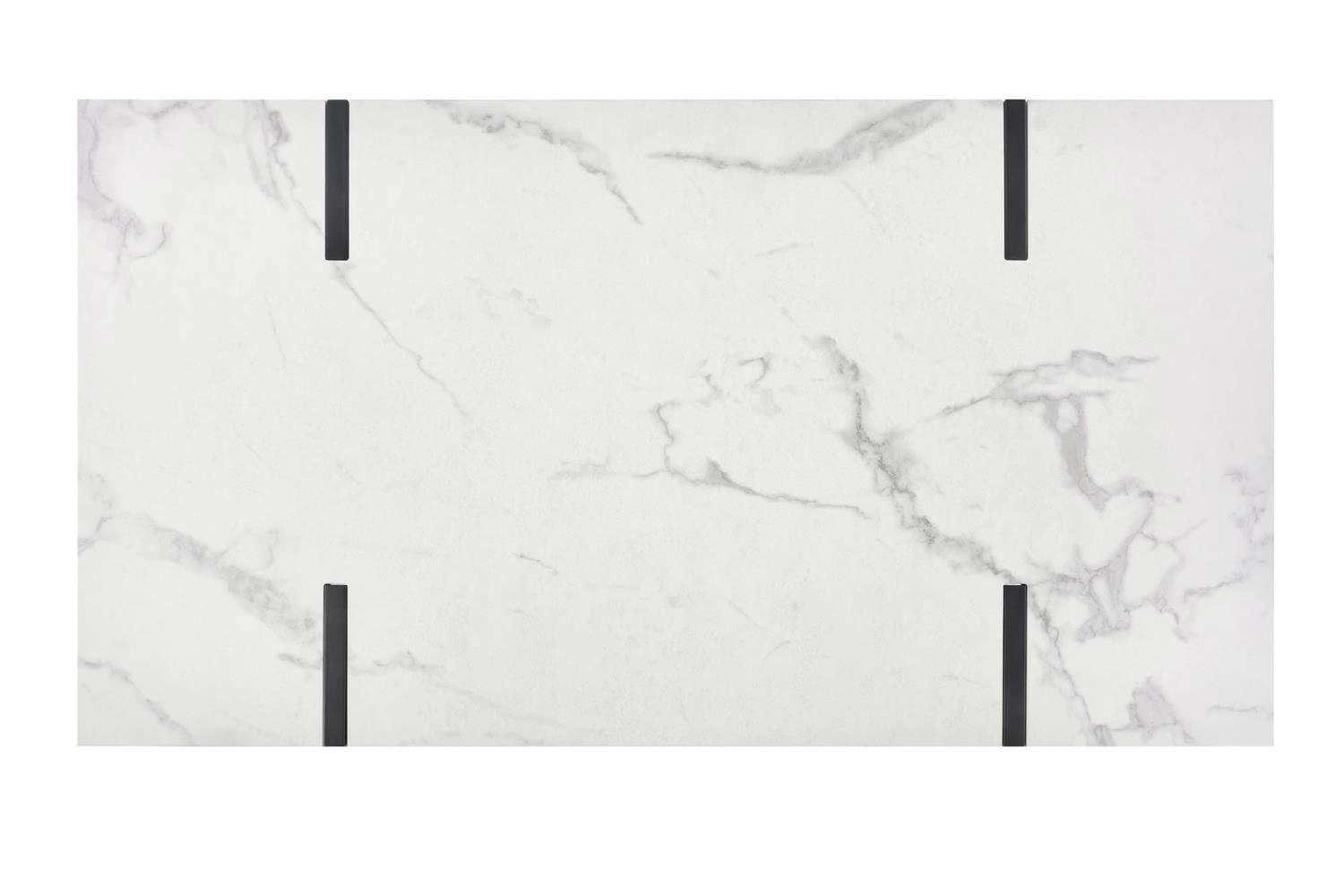 Do wykonania stolika Marbella zastosowano płytę MDF z okleiną imitującą marmur oraz stal malowaną proszkowo na czarno. Połączenie tych dwóch materiałów zapewnia trwałość, solidność i estetykę. Blat stolika o prostokątnym kształcie pięknie imituje naturalny biały marmur. To nadaje stolikowi niezwykłego uroku i klasycznego charakteru. Natomiast czarny stelaż metalowy nadaje mu solidności i stabilności, a jednocześnie podkreśla jego nowoczesny charakter. Marbella waży 17 kg, co sprawia, że jest łatwy do przemieszczania według Twoich potrzeb. Jego wysokość wynosi 43 cm, co czyni go idealnym meblem do ustawienia obok kanapy lub fotela w salonie. Może pełnić funkcję stolika pomocniczego, na którym można postawić filiżankę kawy, książkę, czy dekoracyjne przedmioty.