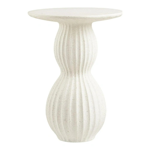 Stolik kawowy Newtown marki House Nordic to kompaktowy, nowoczesny stolik kawowy okrągły o średnicy 40 cm i wysokości 55 cm, wykonany z masywnego cementu na bazie gliny w matowym, białym wykończeniu. Sprawdzi się jako stolik kawowy do salonu, stolik boczny przy sofie lub dekoracyjny stolik pomocniczy w sypialni, jadalni czy gabinecie.Nowoczesny stolik kawowy o rzeźbiarskiej formie