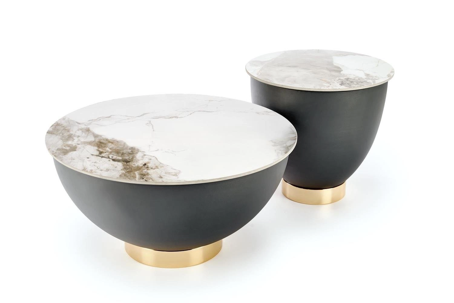 Stolik kawowy Moonshine L Intesi to stylowy i funkcjonalny wybór dla każdego, kto poszukuje niebanalnego, okrągłego stolika kawowego do salonu w stylu glamour lub nowoczesnym. Dzięki zastosowaniu ceramiki i stali stolik łączy trwałość z elegancją, a praktyczny schowek sprawia, że codzienne użytkowanie jest jeszcze wygodniejsze.