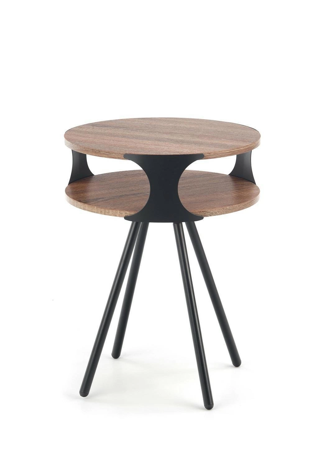 Nowoczesny stolik kawowy drewniany Nabul wyróżnia się uniwersalnym, okrągłym blatem o średnicy 45 cm, wykończonym w eleganckim odcieniu naturalnego dębu. Dolna półka to praktyczne rozwiązanie dla osób ceniących porządek – bez trudu przechowasz tu książki, gazety czy piloty, zyskując więcej wolnej przestrzeni na blacie. Stolik o wysokości 60 cm świetnie sprawdzi się przy sofie, fotelu czy narożniku, a jego kompaktowa forma czyni go doskonałym wyborem także do mniejszych salonów.Design industrialny i trwałe materiały – dlaczego warto wybrać stolik kawowy Nabul?