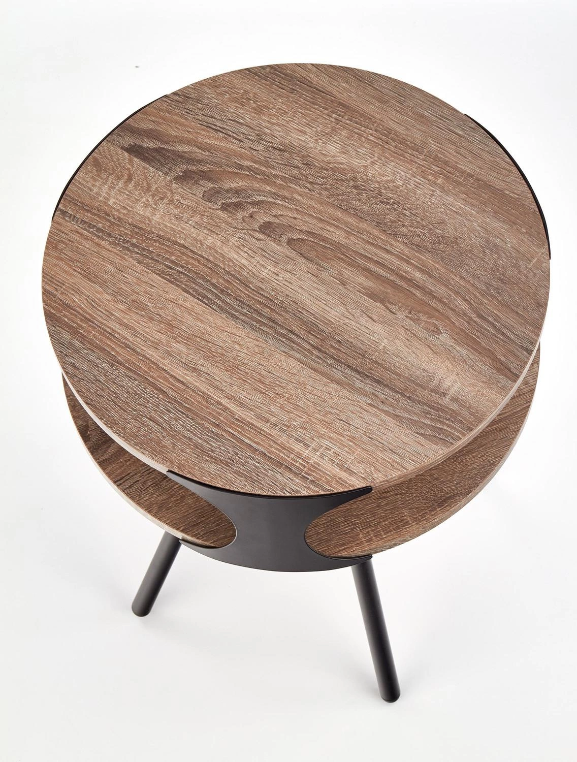 Stolik kawowy okrągły Nabul 45x60 cm loftowy dąb z półką do salonu Intesi – nowoczesność i funkcjonalność w jednym